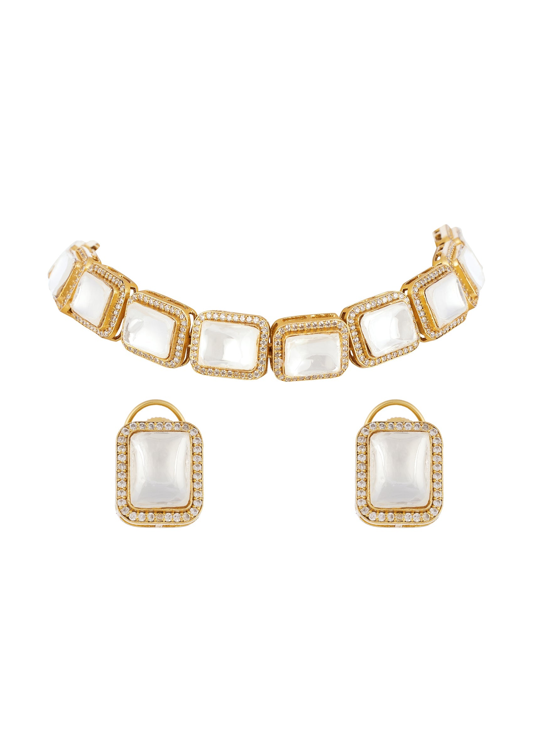 Gold Earrings With Refined Kundan Detail