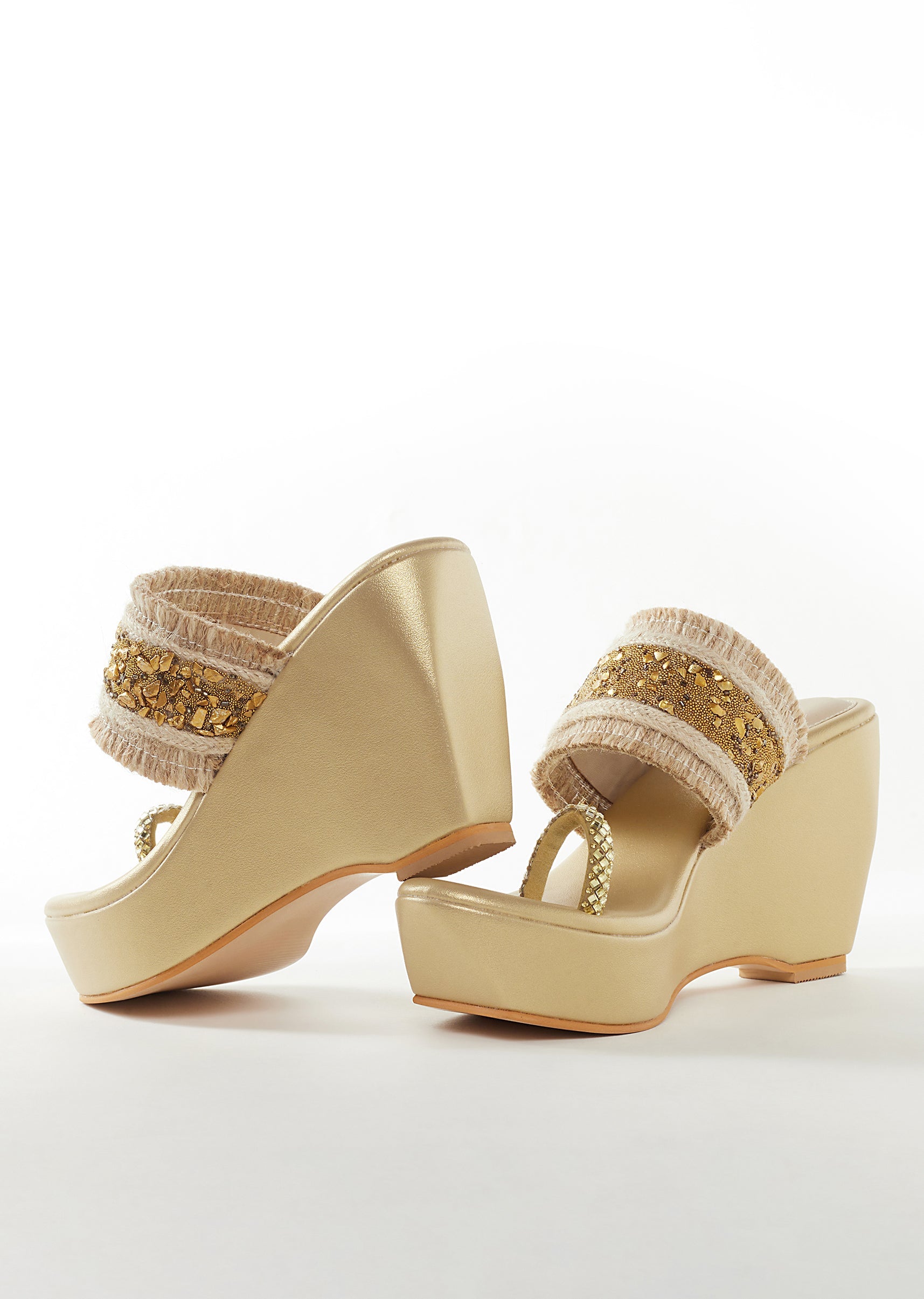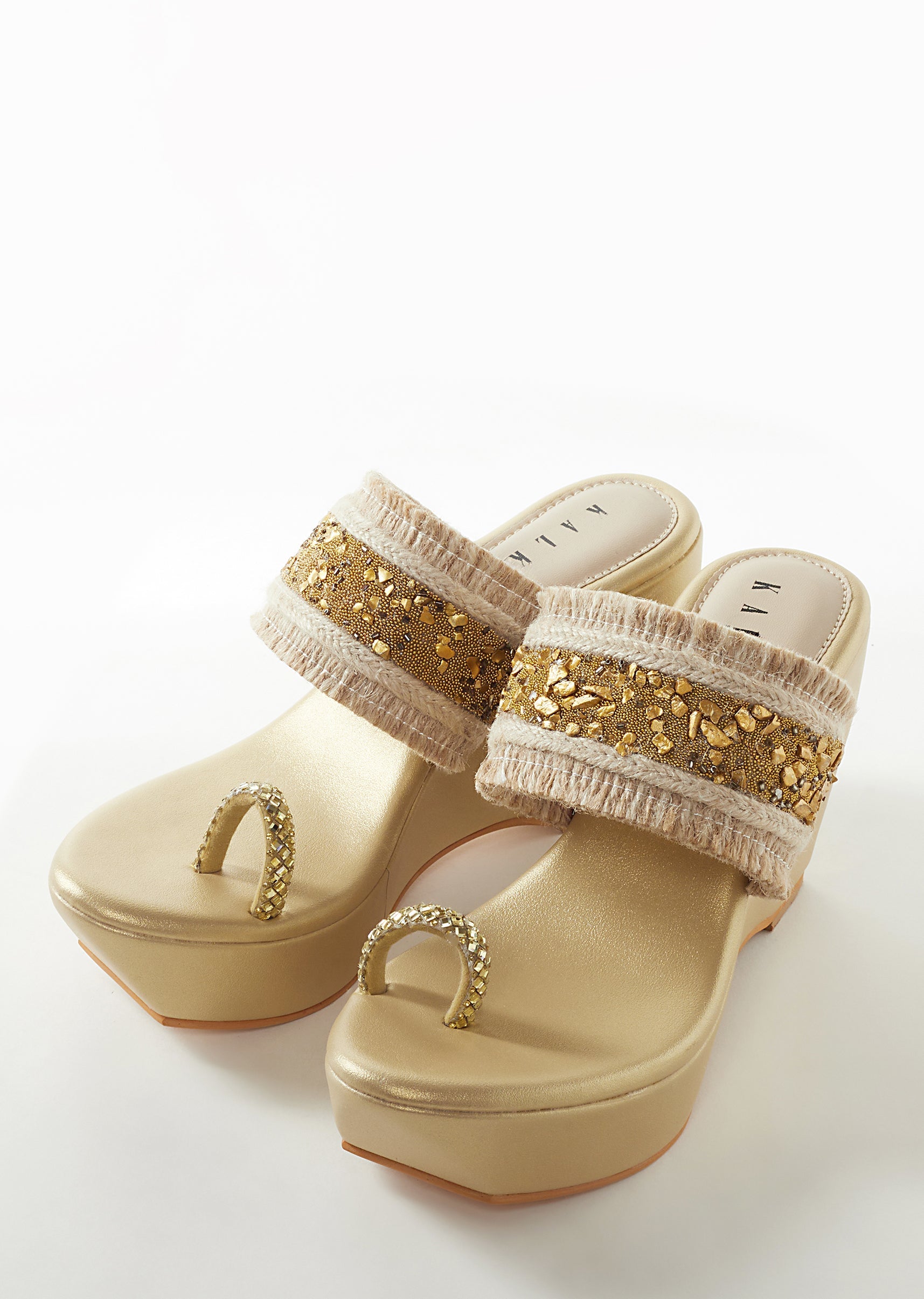Radiant and versatile, these gold festive footwear pieces are crafted in smooth faux leather for a polished finish perfect for receptions and wedding celebrations. The embellished detailing adds a subtle... More Product Details