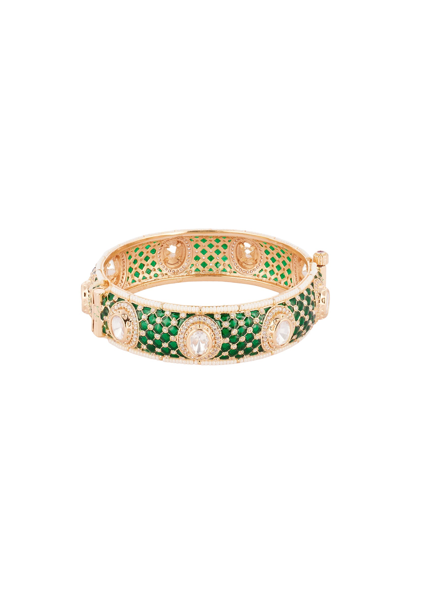 Gold Finish Bangle Set In Kundan Polki With Pearl Detailing