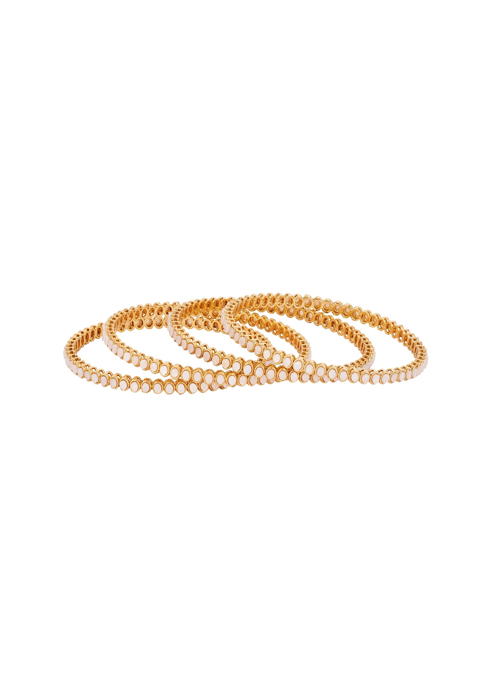 Gold Finish Bangles With Traditional Temple Motifs And Mother of Pearl Accents