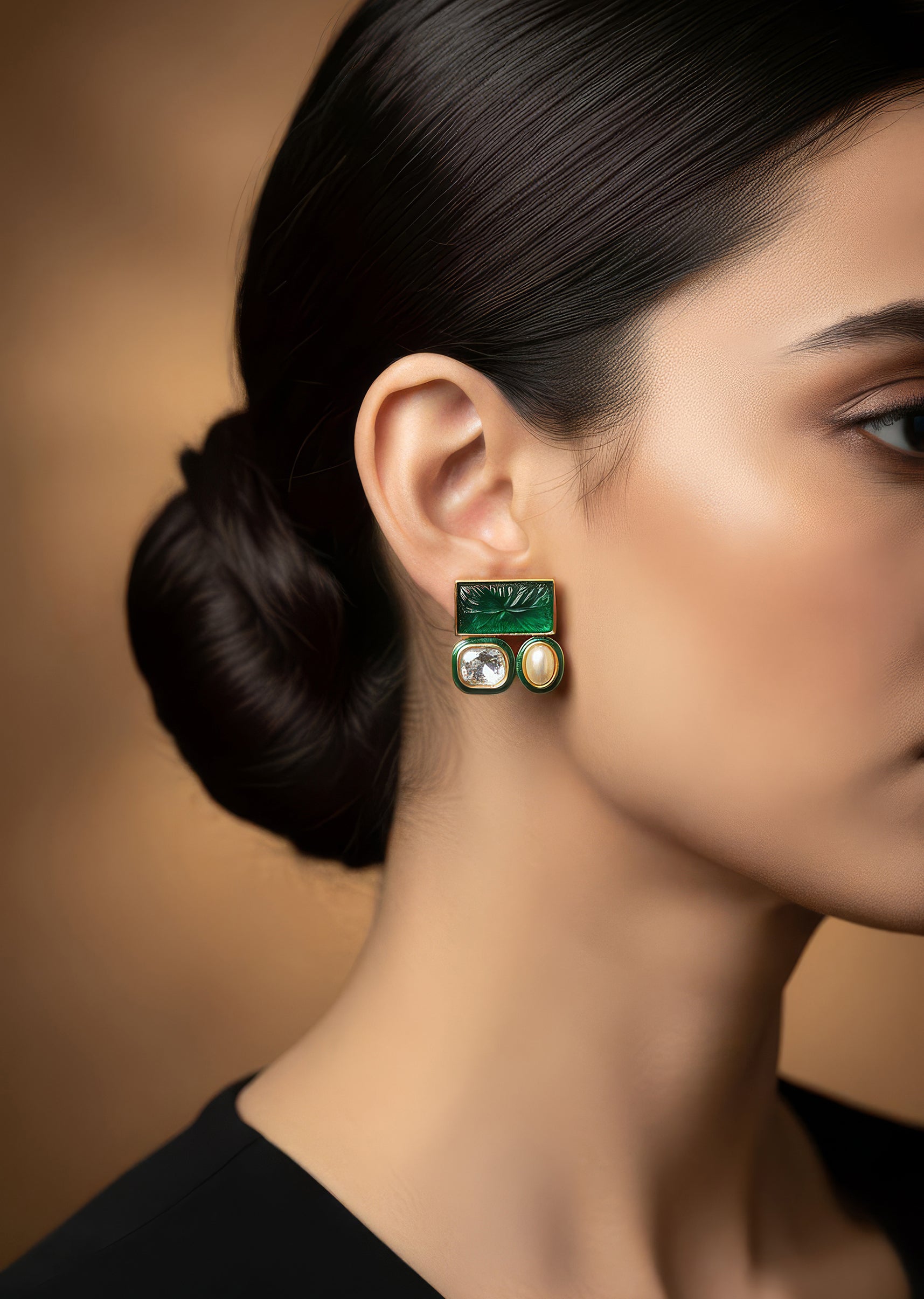 Style these earrings with silk sarees, embroidered lehengas or lehengas in ivory, green or deep jewel tones to complement the polki detailing.