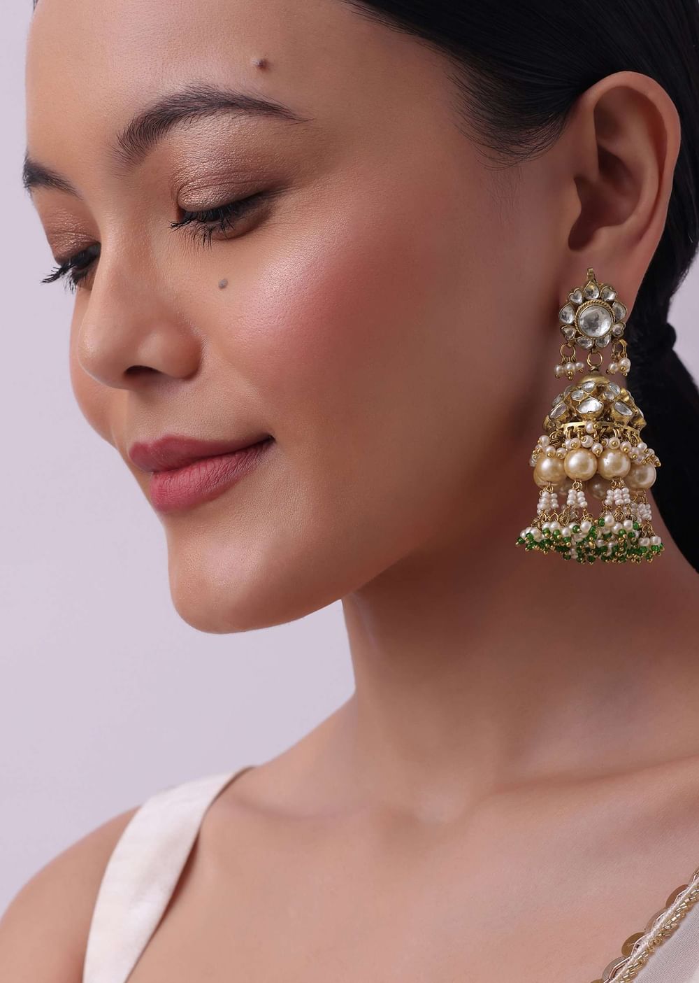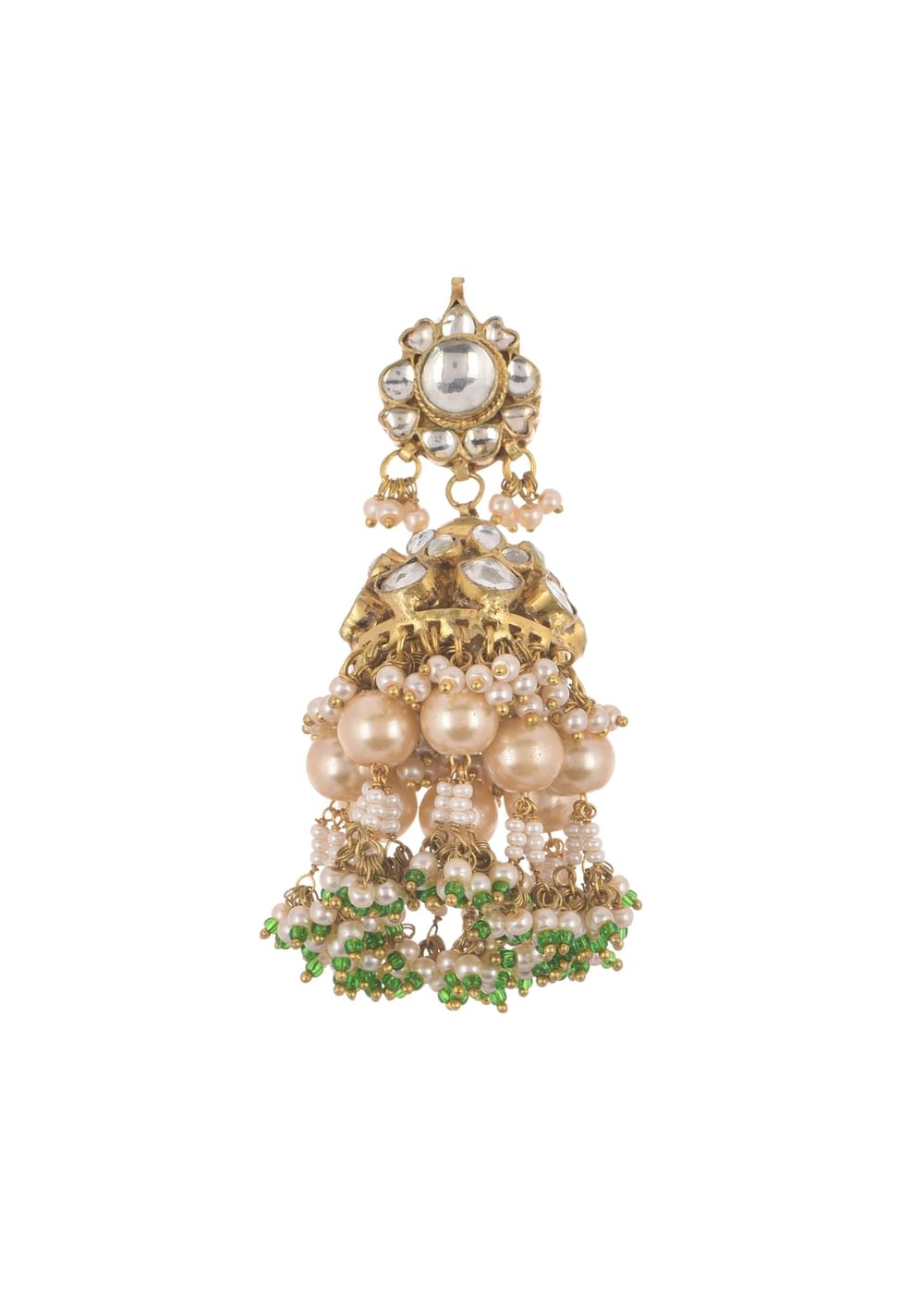 Elevate your bridal allure with our opulent gold finish heavy bridal choker and maang tikka set. Adorned with resplendent golden and green drops, the choker and maang tikka offers a harmonious blend of tradition and modernity. The set also includes a pair of jhumkis, ensuring a complete and captivating bridal look. Store in a dust bag. Keep away from moisture, perfume, alcohol, and harsh chemicals. Spot clean only. Keep away from sharp objects. A. Awarded as the Most Trusted Brand, we're delivering styles you love, just as promised.