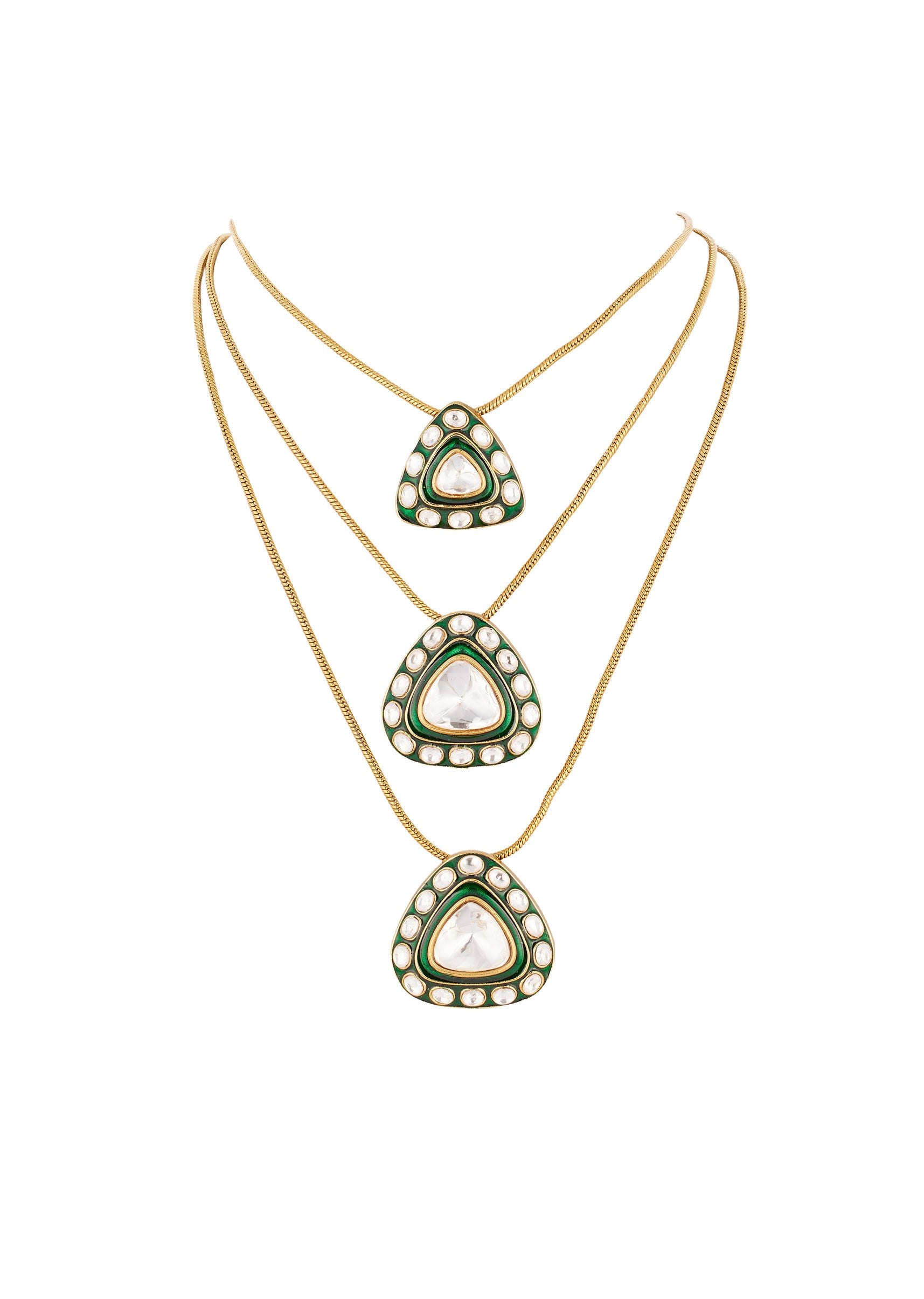 Infused with traditional artistry, this green and gold jewellery set is crafted using the classic Kundan Jadau technique. The handcrafted detailing enhances its regal appeal, while the rich green tones bring a vibrant touch to festive and bridal ensembles. Designed to elevate every celebratory moment, it adds a blend of heritage charm and graceful sophistication to your look. Awarded as the Most Trusted Brand, we're delivering styles you love, just as promised.