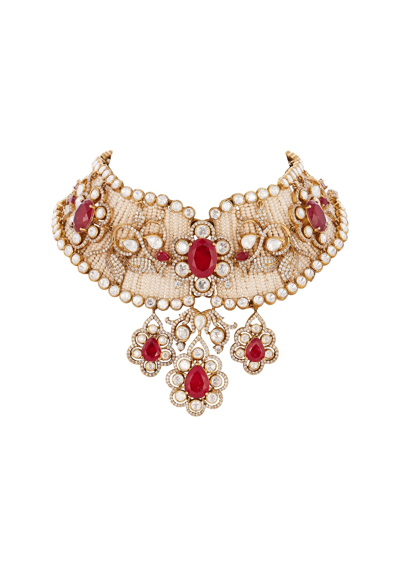 Pair this necklace with heavily embroidered lehengas or silk sarees for a classic royal look.