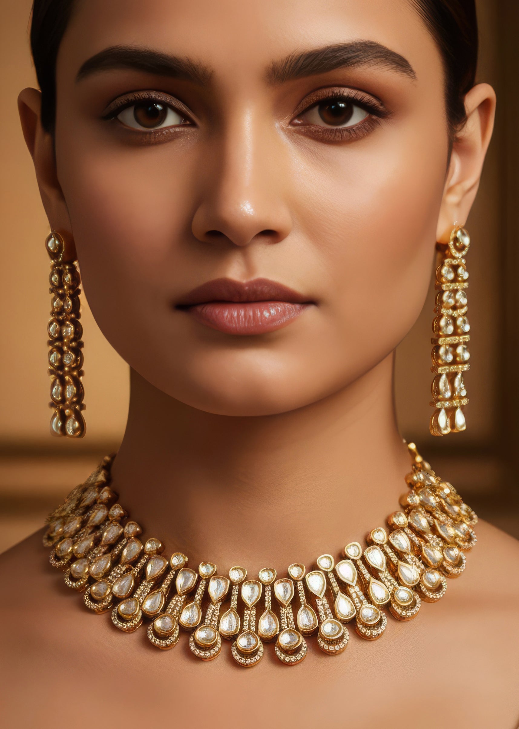 Pair with a richly embroidered lehenga or saree to enhance the Polki and gemstone detailing.