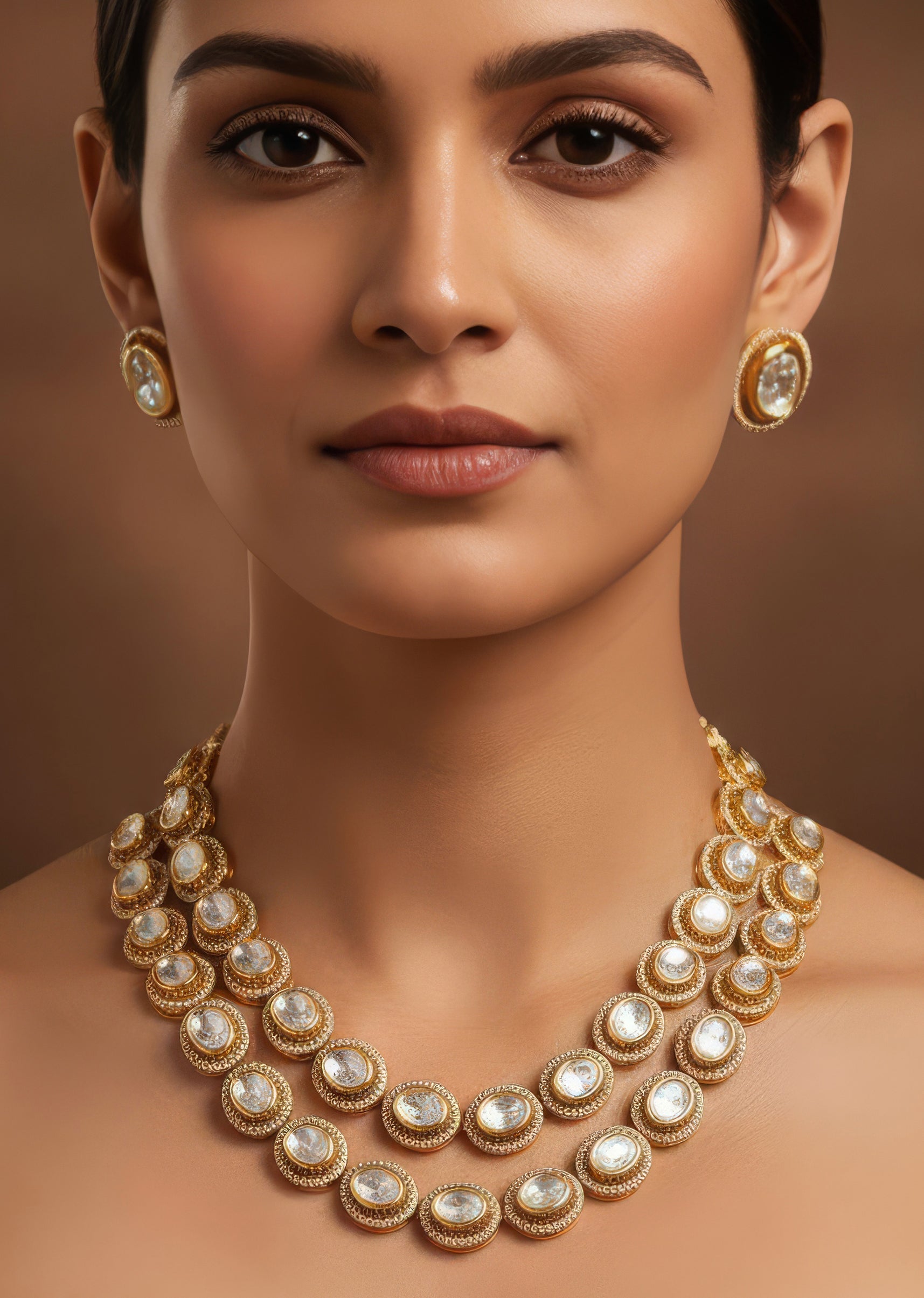 Pair with a richly embroidered lehenga or saree to highlight the Polki and gemstone detailing.