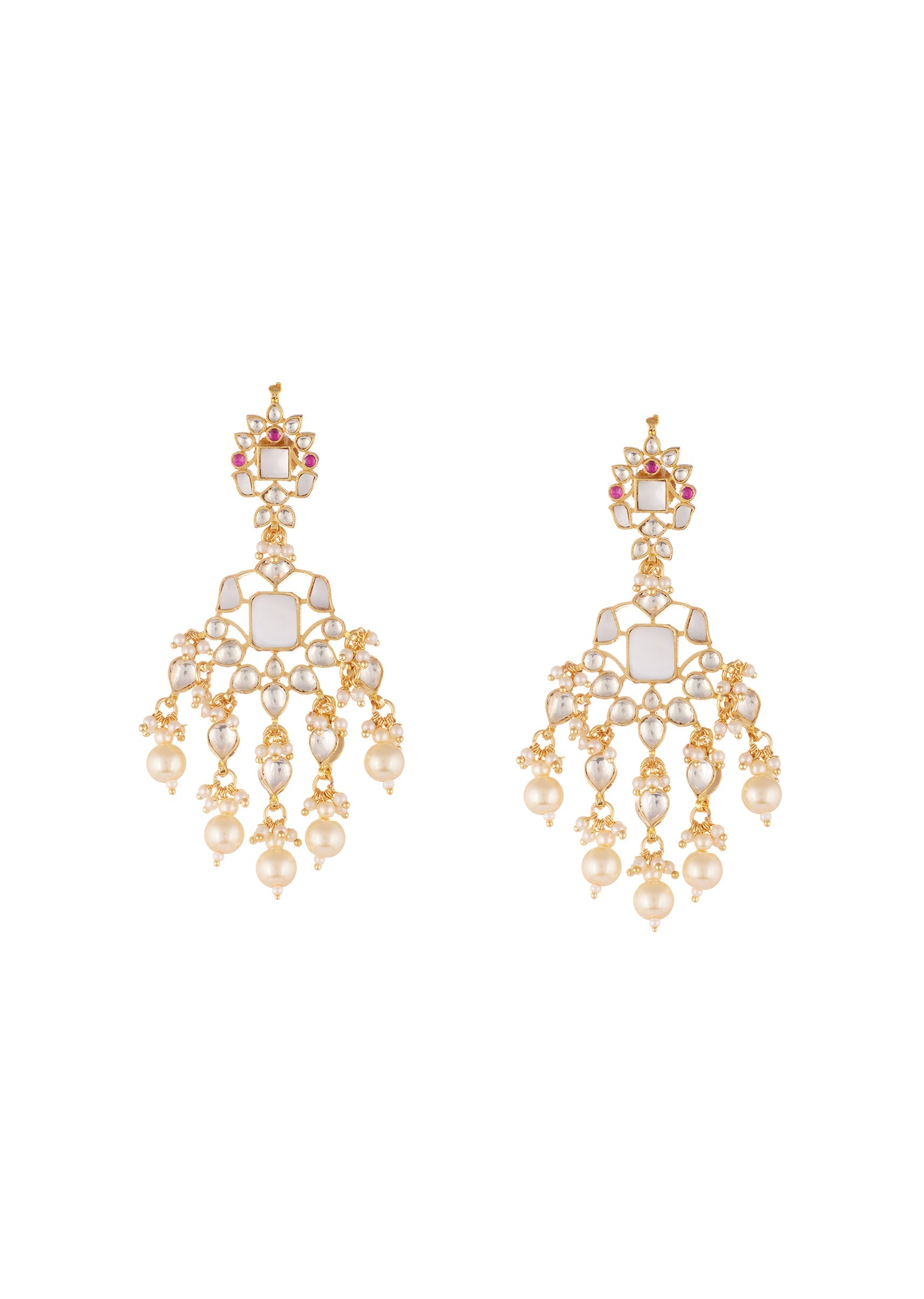 : Pair it with a pink or ivory lehenga to highlight the kundan work and enhance the pearl dangle accents.
