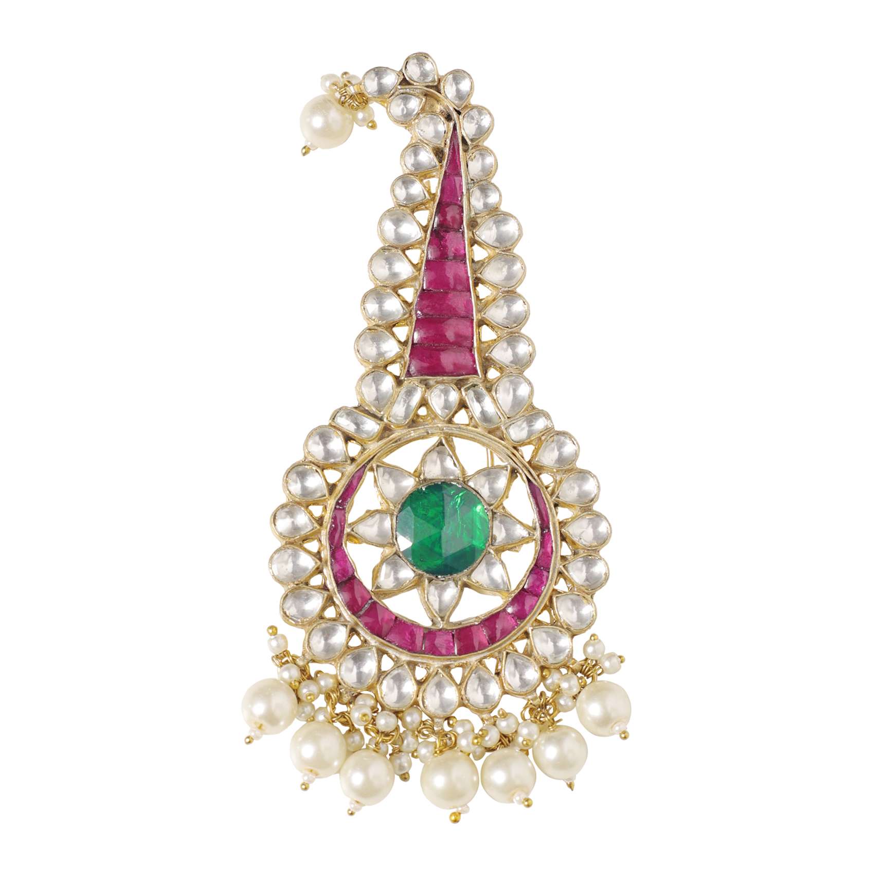 Elevate your regal look with the captivating charm of our gold finish kundan kalgi in mix metal with emerald green stone. This exquisite kalgi is crafted with meticulous details and showcases a mesmerizing combination of pink and white tones creating a stunning accessory for the groom's pagdi. EVENT - Perfect for weddings.Store in a dust bag. Keep away from moisture perfume alcohol and harsh chemicals. Spot clean only. Keep away from sharp objects. Actual color may slightly vary due to photographic lighting sources and device screen settings. Awarded as the Most Trusted Brand, we're delivering styles you love, just as promised.