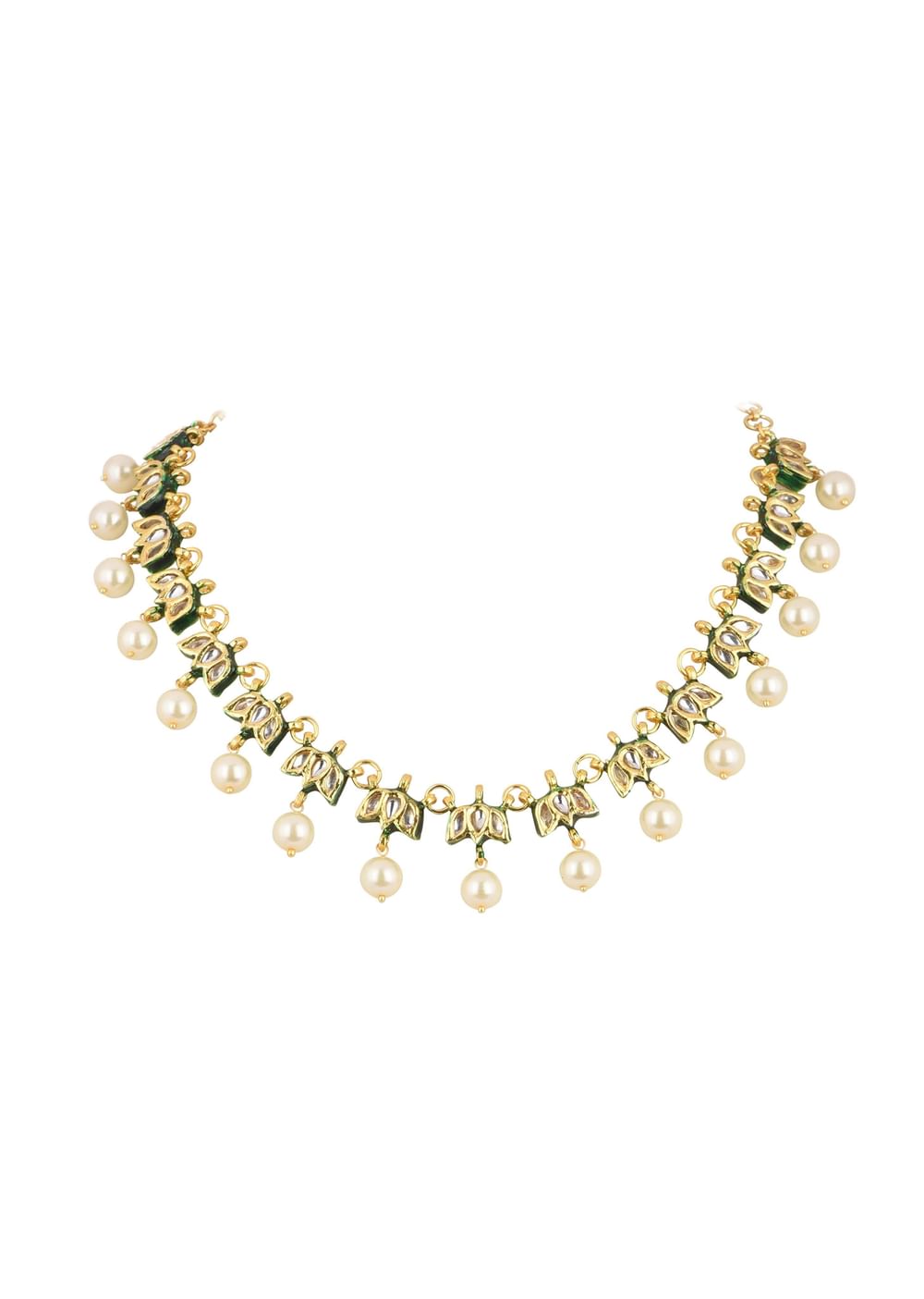 Step into a world of sophistication with our gold-finish kundan necklace with pearls. The necklace is beautifully complemented by the ethereal white pearls creating a delightful fusion of elegance and charm. EVENT - Perfect for weddings festive celebrations and glamorous evening events.Store in a dust bag. Keep away from moisture perfume alcohol and harsh chemicals. Spot clean only. Keep away from sharp objects. Actual color may slightly vary due to photographic lighting sources and device screen settings. Awarded as the Most Trusted Brand, we're delivering styles you love, just as promised.