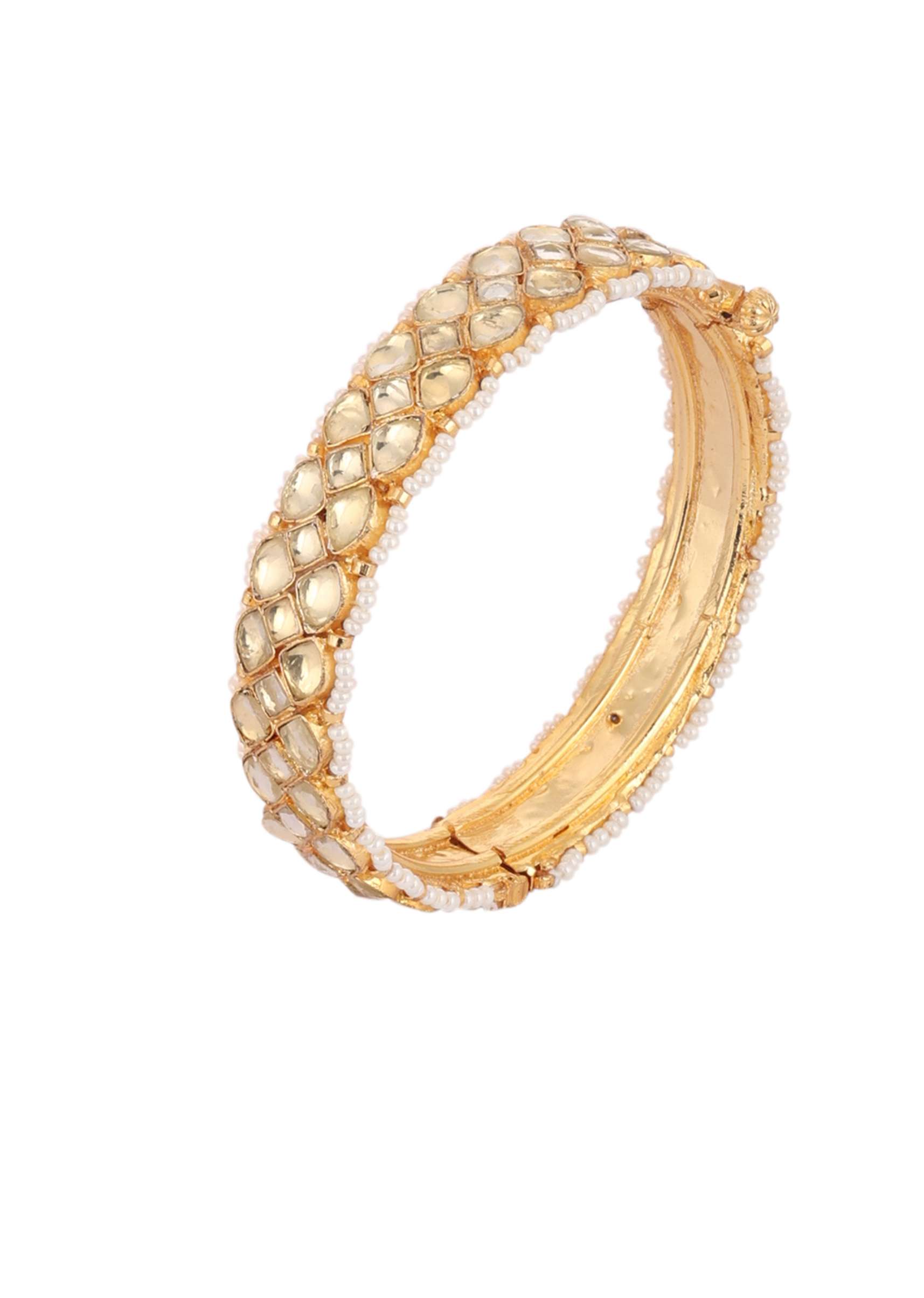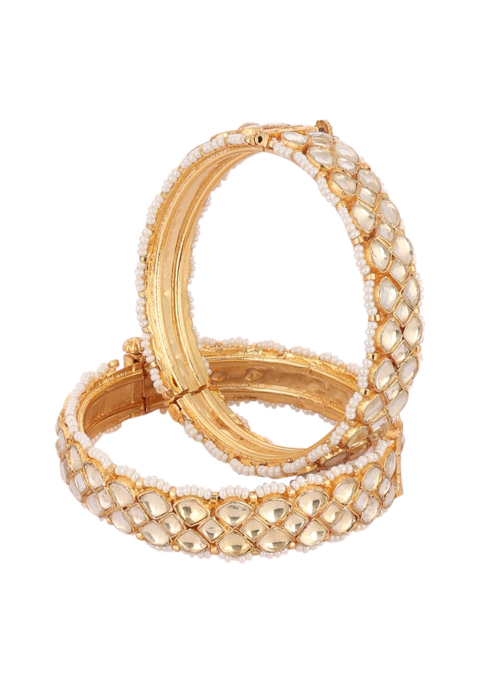 Gold Finish Kundan Polki Bangles With Pearls