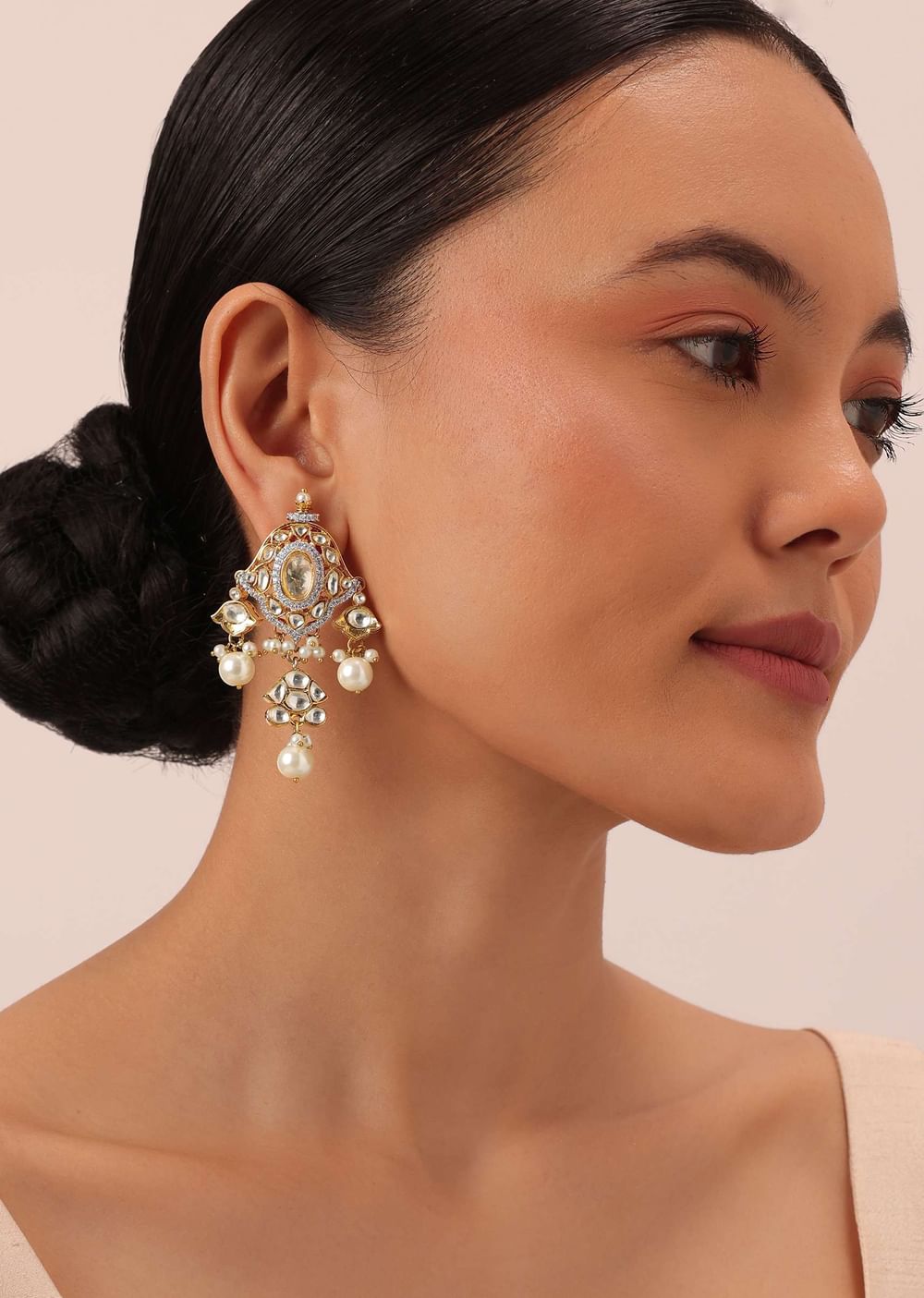 Introducing our stunning gold finish kundan polki choker set, a true embodiment of regal beauty. This exquisite set combines the traditional charm of kundan polki with a contemporary twist, featuring mesmerizing pearls. EVENT - Perfect for festive and formal events. Avoid contact with water, chemicals, harsh liquids, perfumes, etc. Do not wear this piece of jewelry while showering, gym, swimming, etc. Please keep the product away from moisture and humidity when not in use. Slight variations in design may vary. Being rewarded as the most trusted brand, our customers believe we deliver the same styles as promised on the website. Awarded As The Most Trusted Brand We'Re Delivering Styles You Love Just As Promised.