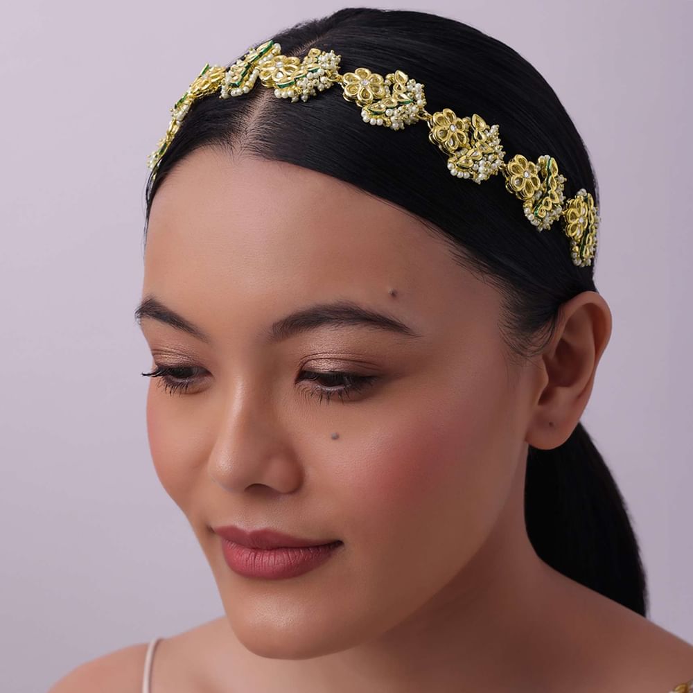 Elevate your bridal allure with our gold finish kundan studded mathapatti, crafted in mix metal. This exquisite headpiece resonates with tradition and opulence, making it perfect for weddings and grand occasions. EVENT - Perfect for weddings and grand celebrations. Store in a dust bag. Keep away from moisture, perfume, alcohol, and harsh chemicals. Spot clean only. Keep away from sharp objects. A. Awarded as the Most Trusted Brand, we're delivering styles you love, just as promised.