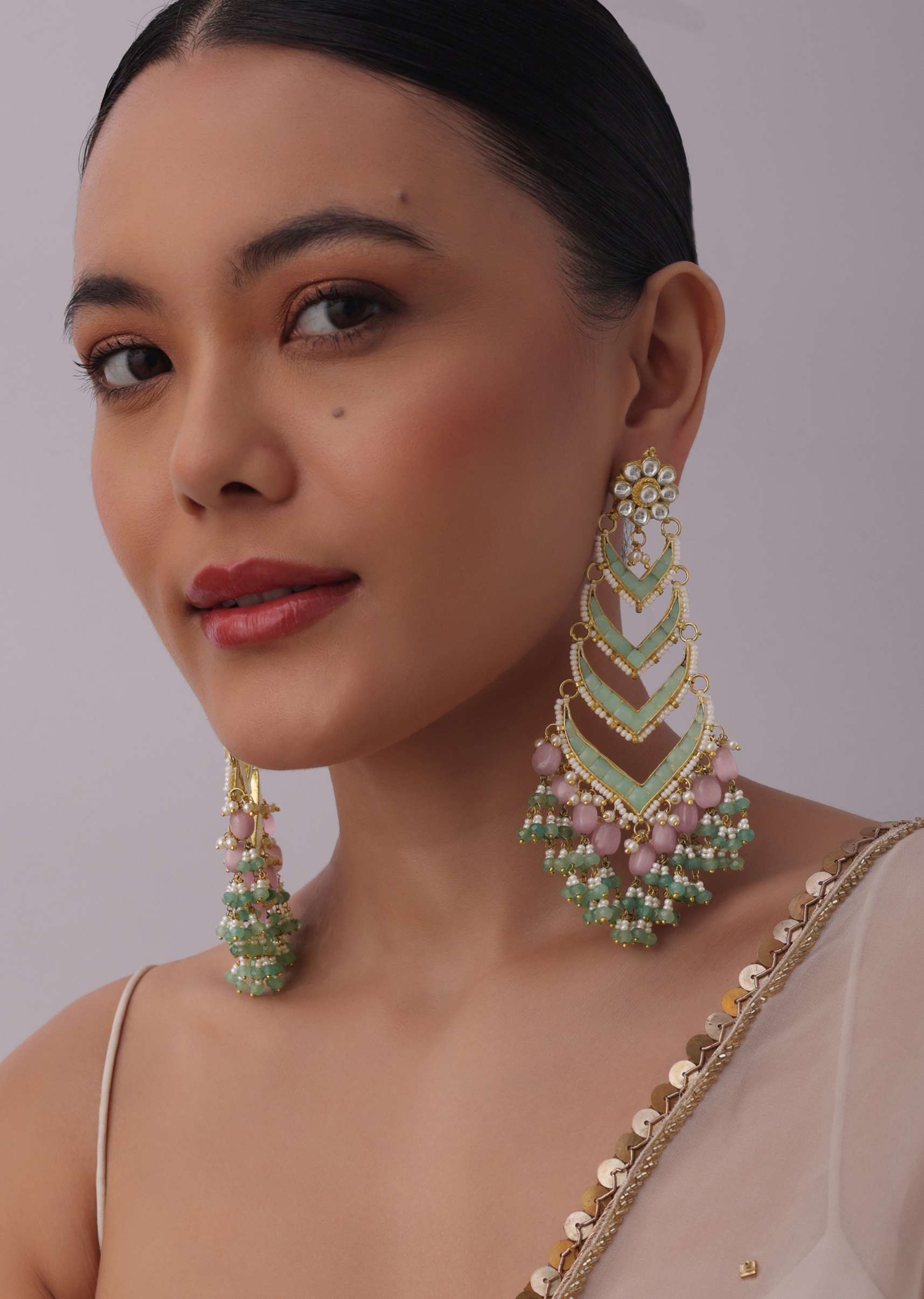 Gold Finish Mint Green Kundan Chandbalis In Mix Metal