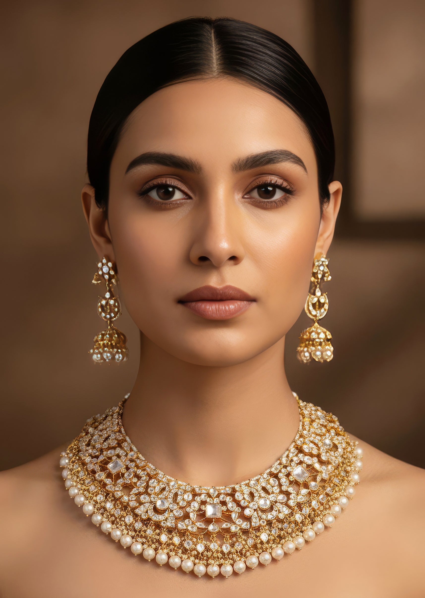 Pair with a heavily embroidered bridal lehenga or silk saree for a royal wedding finish.