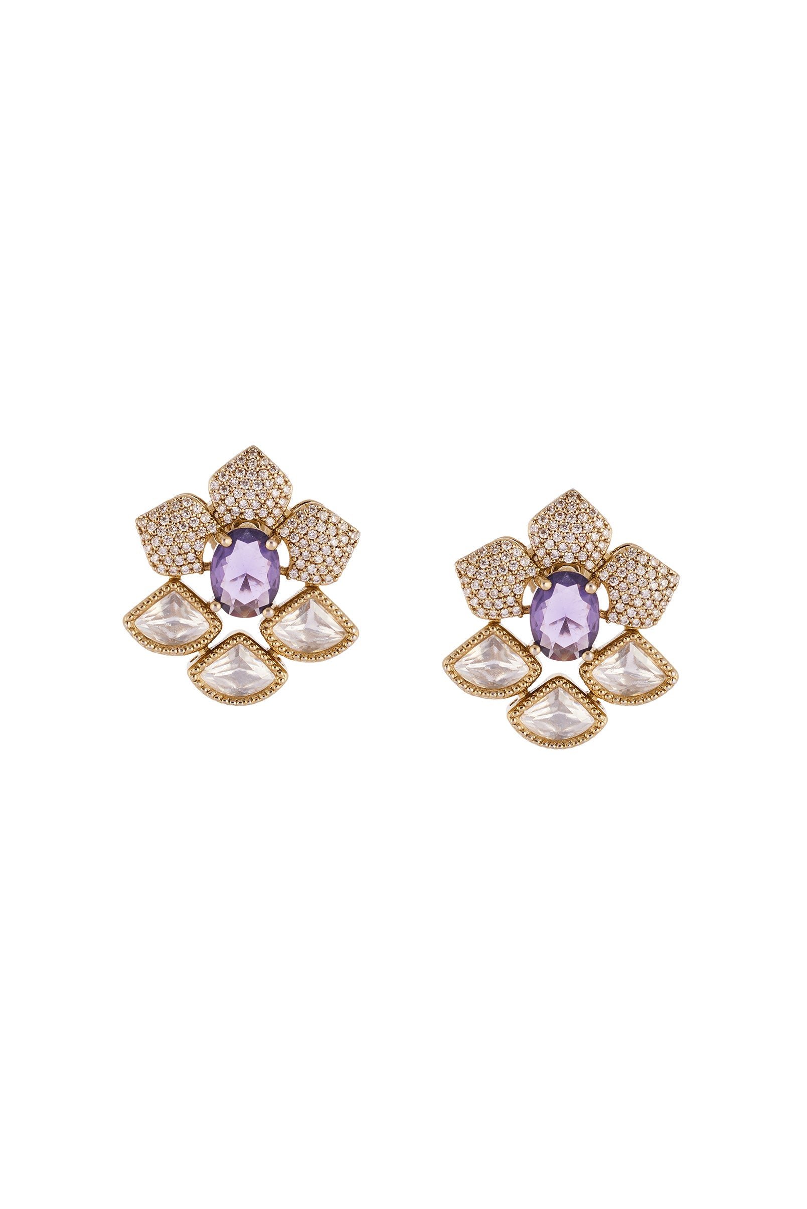 An exquisite blend of regal hues, this gold finish necklace set features uncut Polki set in the traditional Kundan Jadau technique. Handcrafted by skilled artisans, the necklace highlights striking tanzanite accents that bring a refined purple glow to the design. The harmony of warm gold tones, radiant Polki, and rich tanzanite creates a luxurious statement that beautifully complements festive and wedding ensembles. Coordinating earrings complete the set for an elegant, cohesive look. Awarded as the Most Trusted Brand, we're delivering styles you love, just as promised.