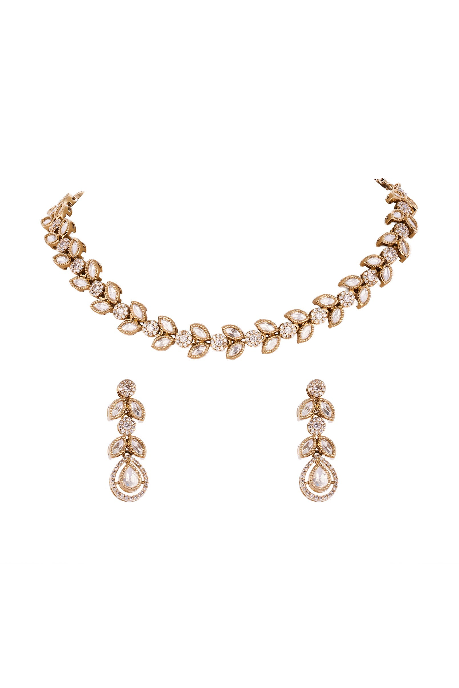 Gold Finish Necklace Set with Polki Detailings