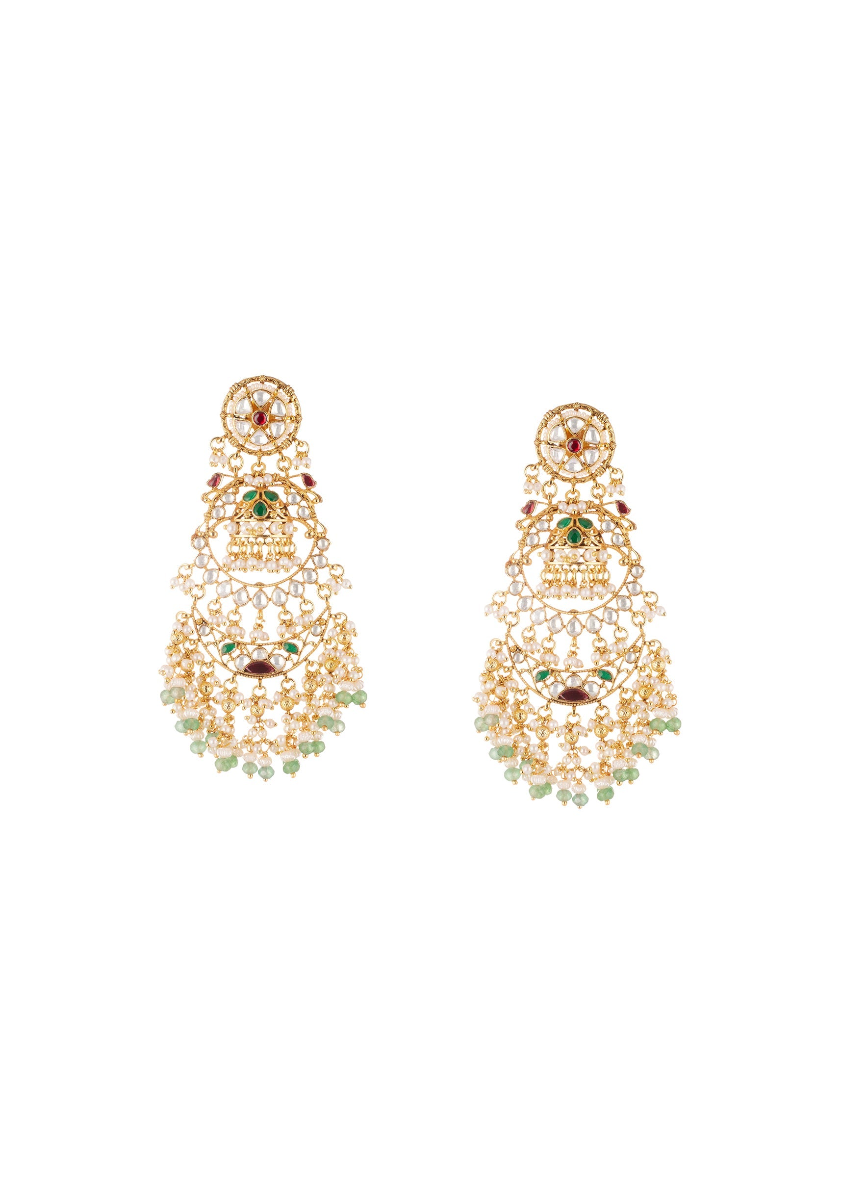 : Pair it with a red green or cream lehenga or a silk saree to accentuate the bead layers and highlight the kundan motifs.