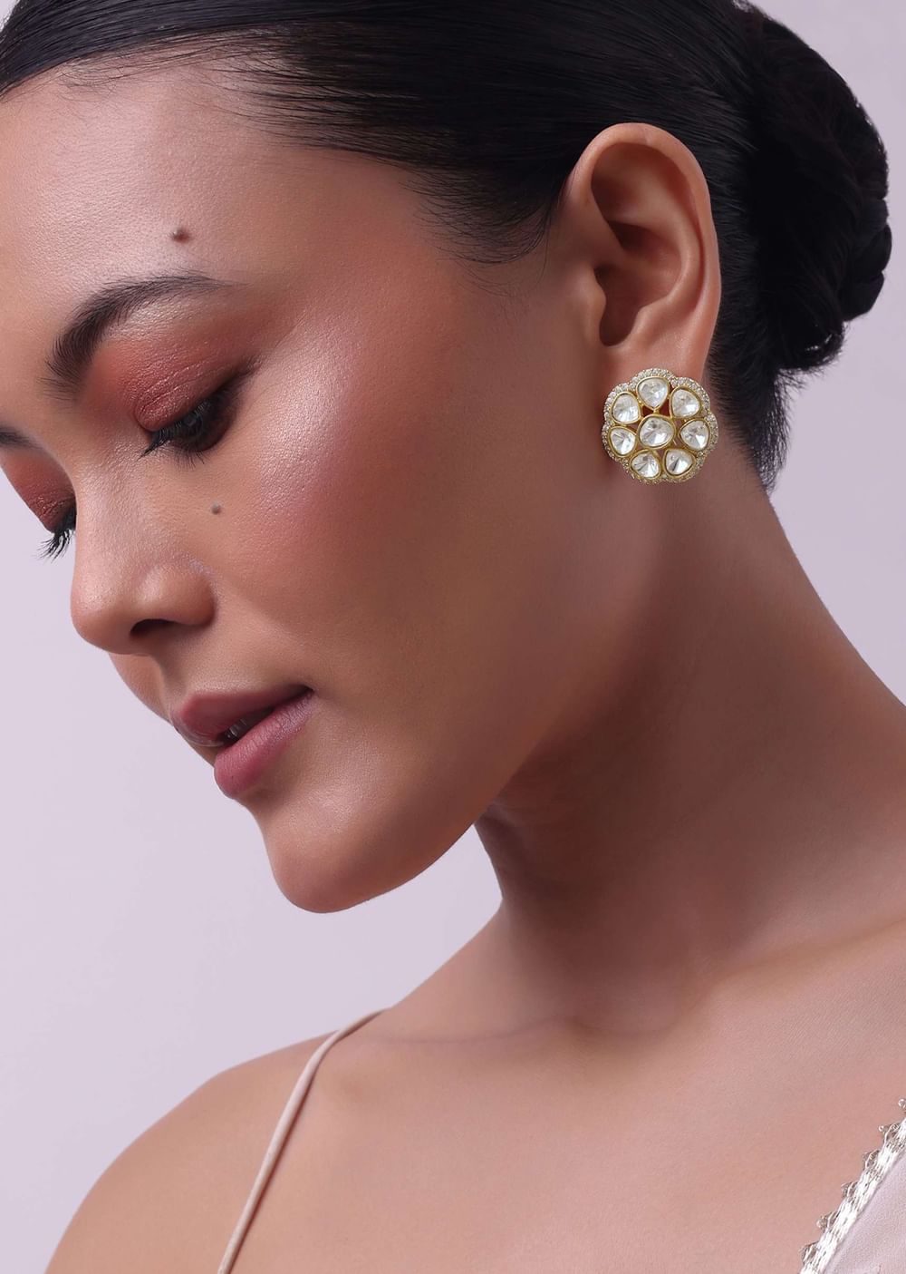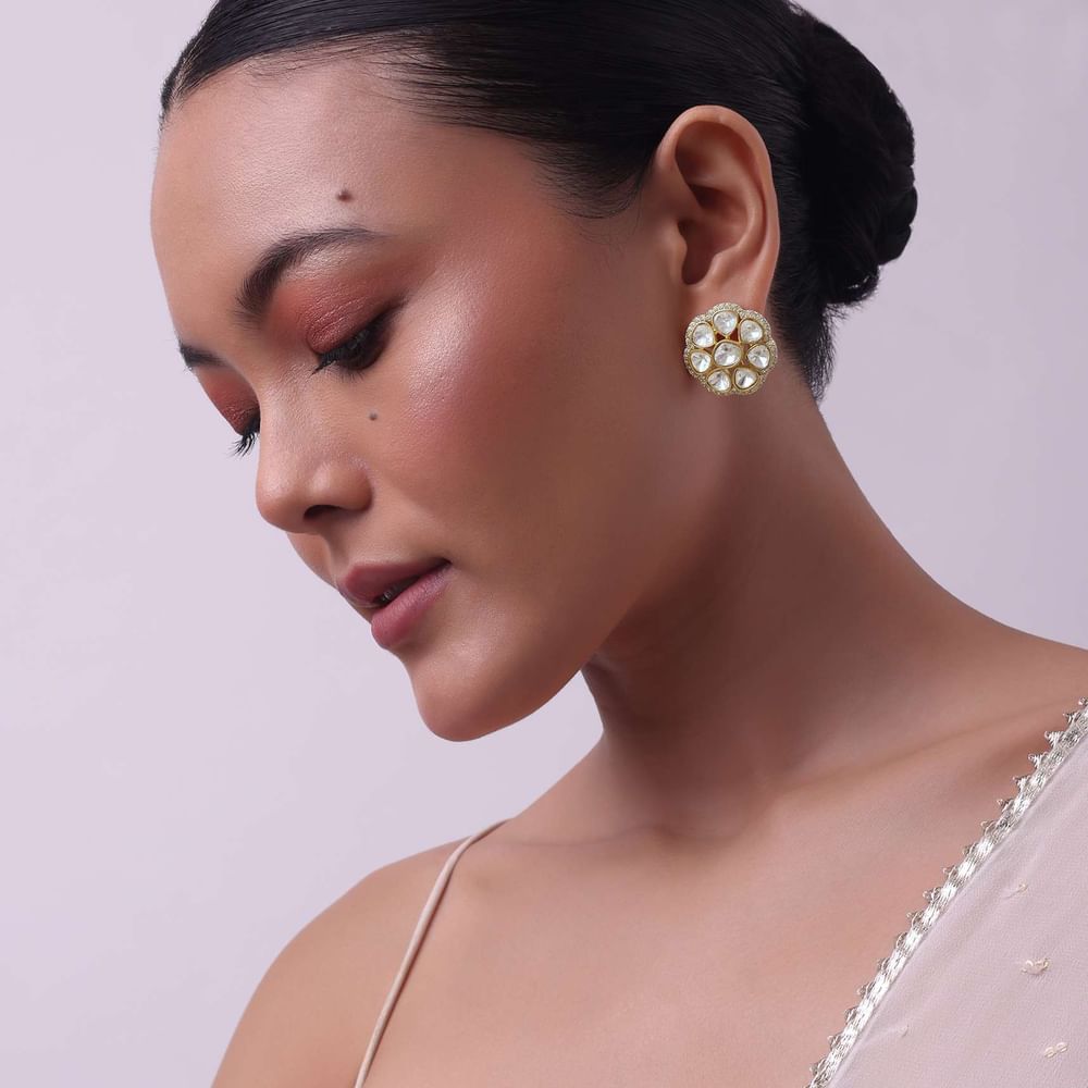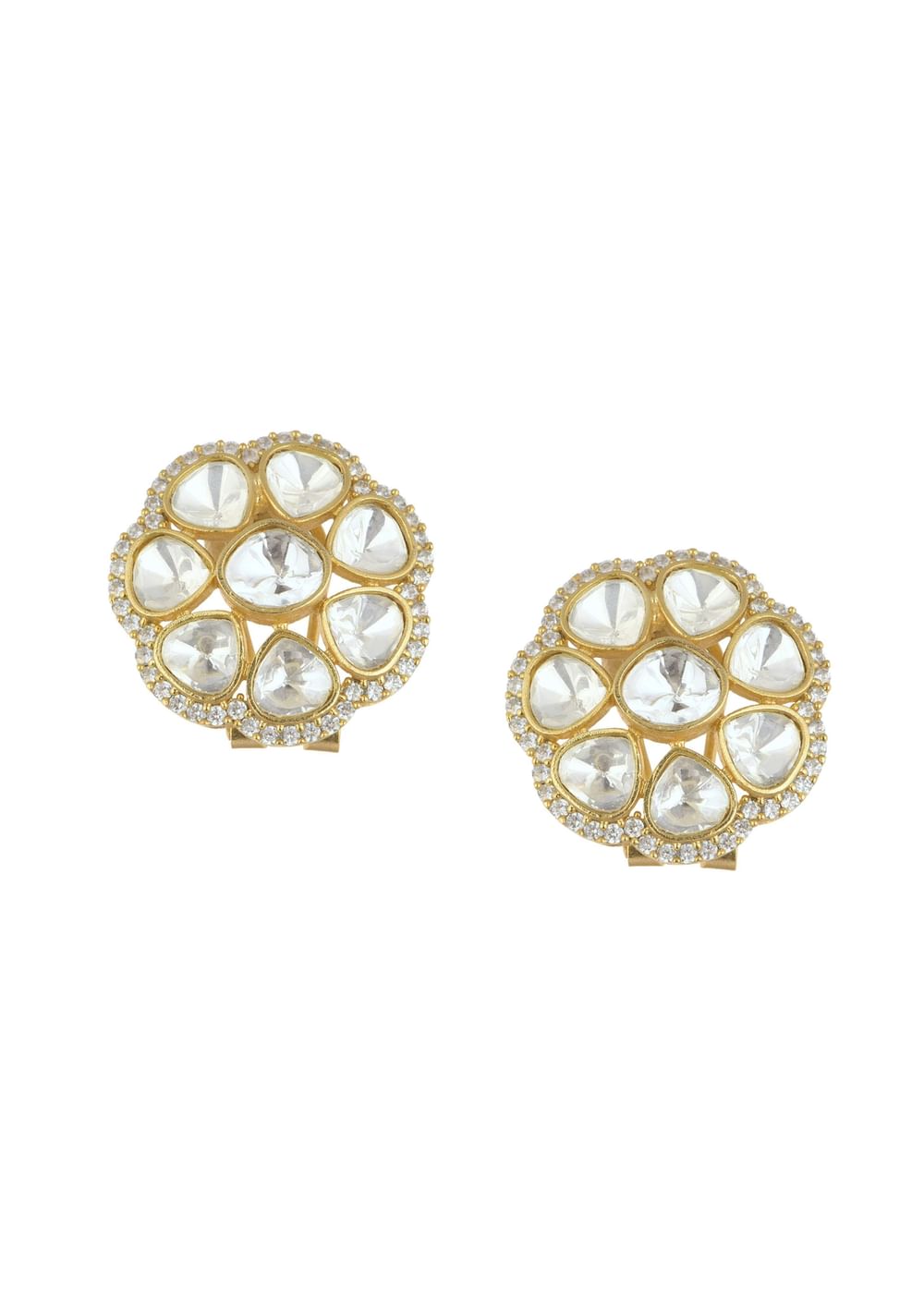 Indulge in the allure of our gold finish studs in mix metal where traditional craftsmanship meets contemporary design. Each stud is meticulously encrusted with dazzling white polki gemstones.EVENT - Elegant occasions weddings parties celebrations and cultural events.Store in a dust bag. Keep away from moisture perfume alcohol and harsh chemicals. Spot clean only. Keep away from sharp objects. Actual color may slightly vary due to photographic lighting sources and device screen settings. Awarded as the Most Trusted Brand, we're delivering styles you love, just as promised.