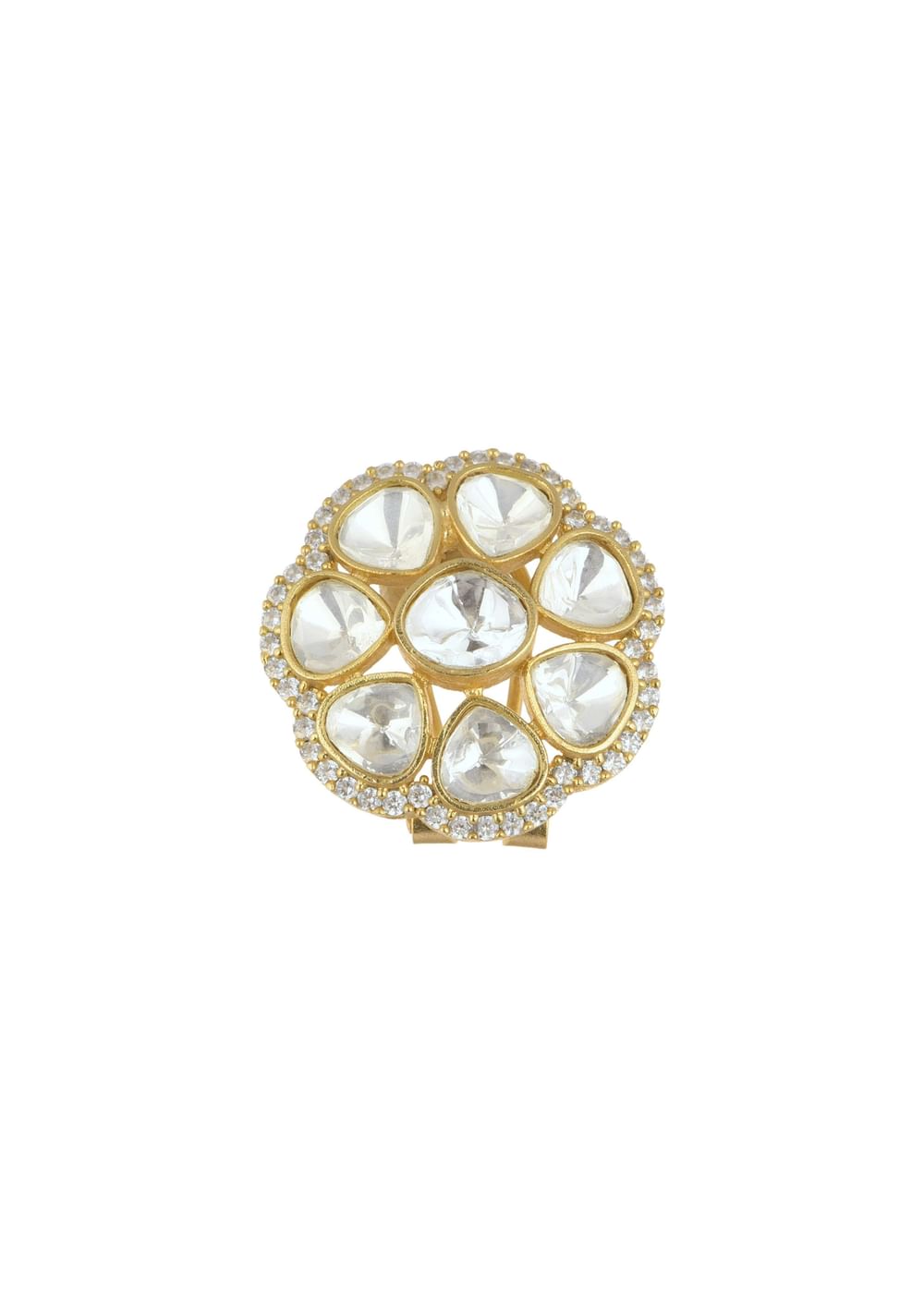 Indulge in the allure of our gold finish studs in mix metal where traditional craftsmanship meets contemporary design. Each stud is meticulously encrusted with dazzling white polki gemstones.EVENT - Elegant... More Product Details