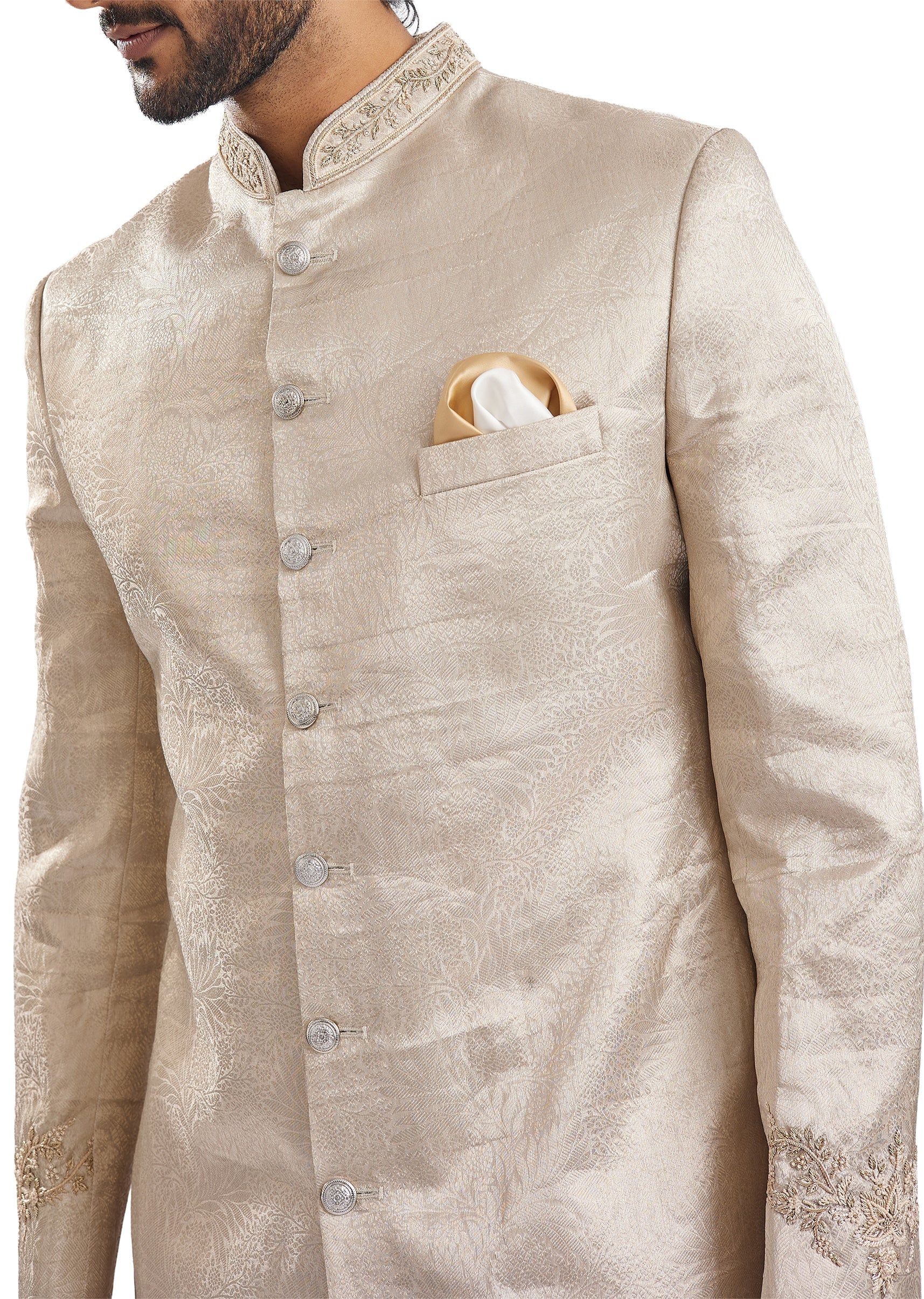 Gold Jacquard Classic Groomsman Sherwani