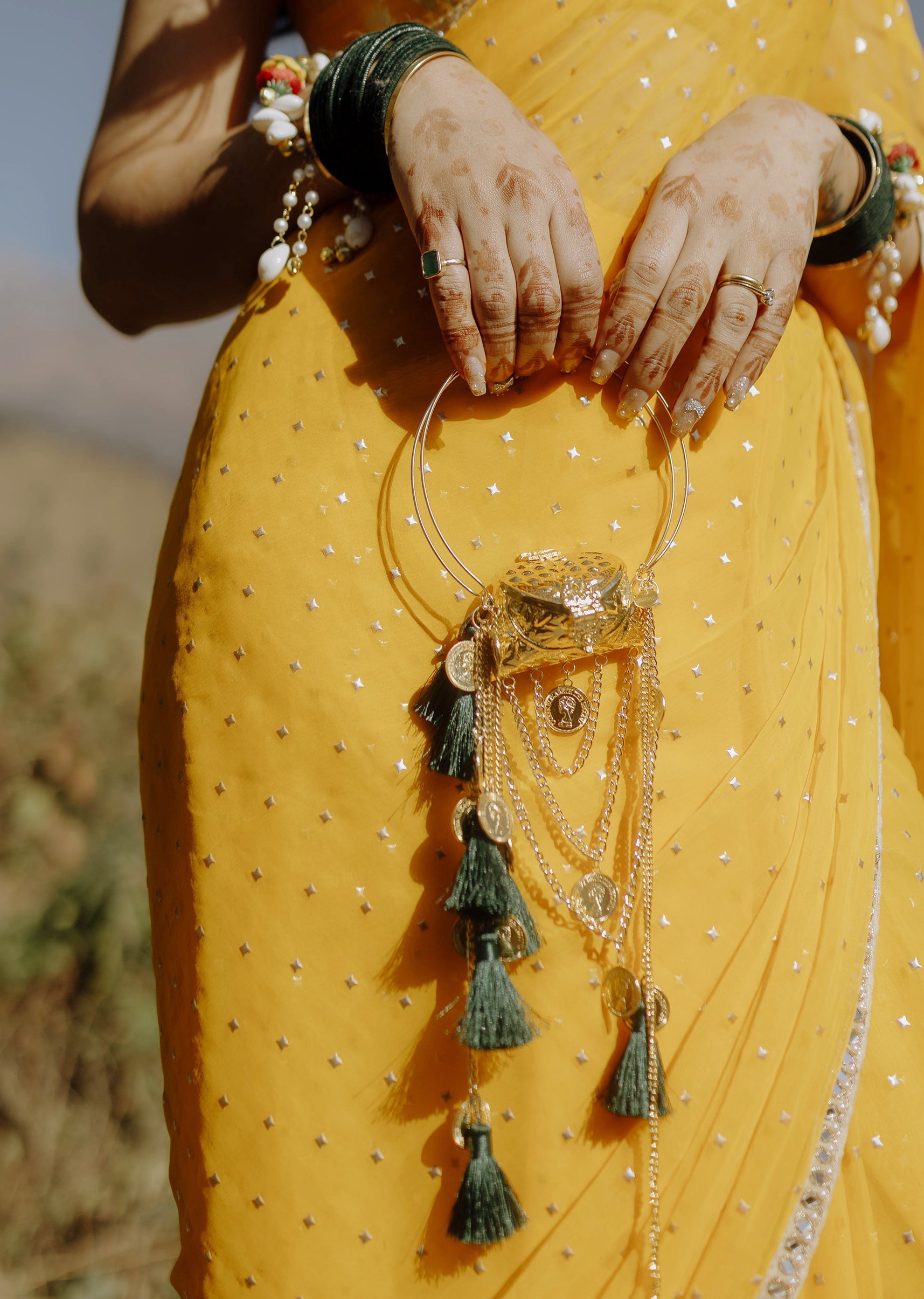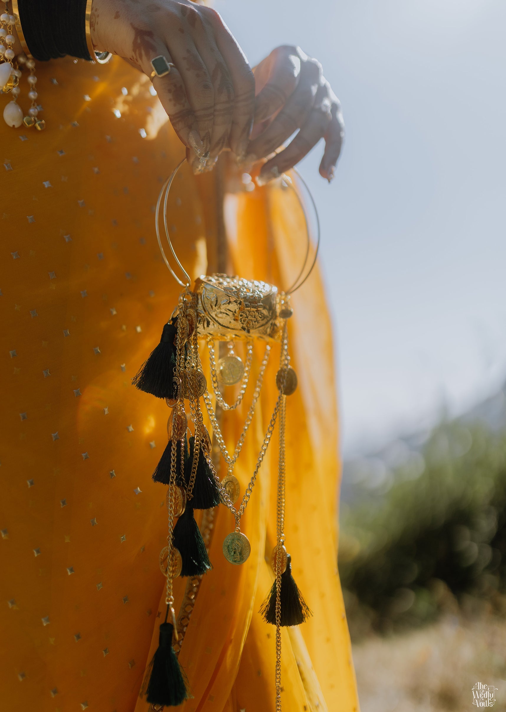 This traditional potli is adorned with layered coin chains and contrasting tassel accents, creating graceful movement and a rich festive appeal. Awarded as the Most Trusted Brand, we're delivering styles you love, just as promised.