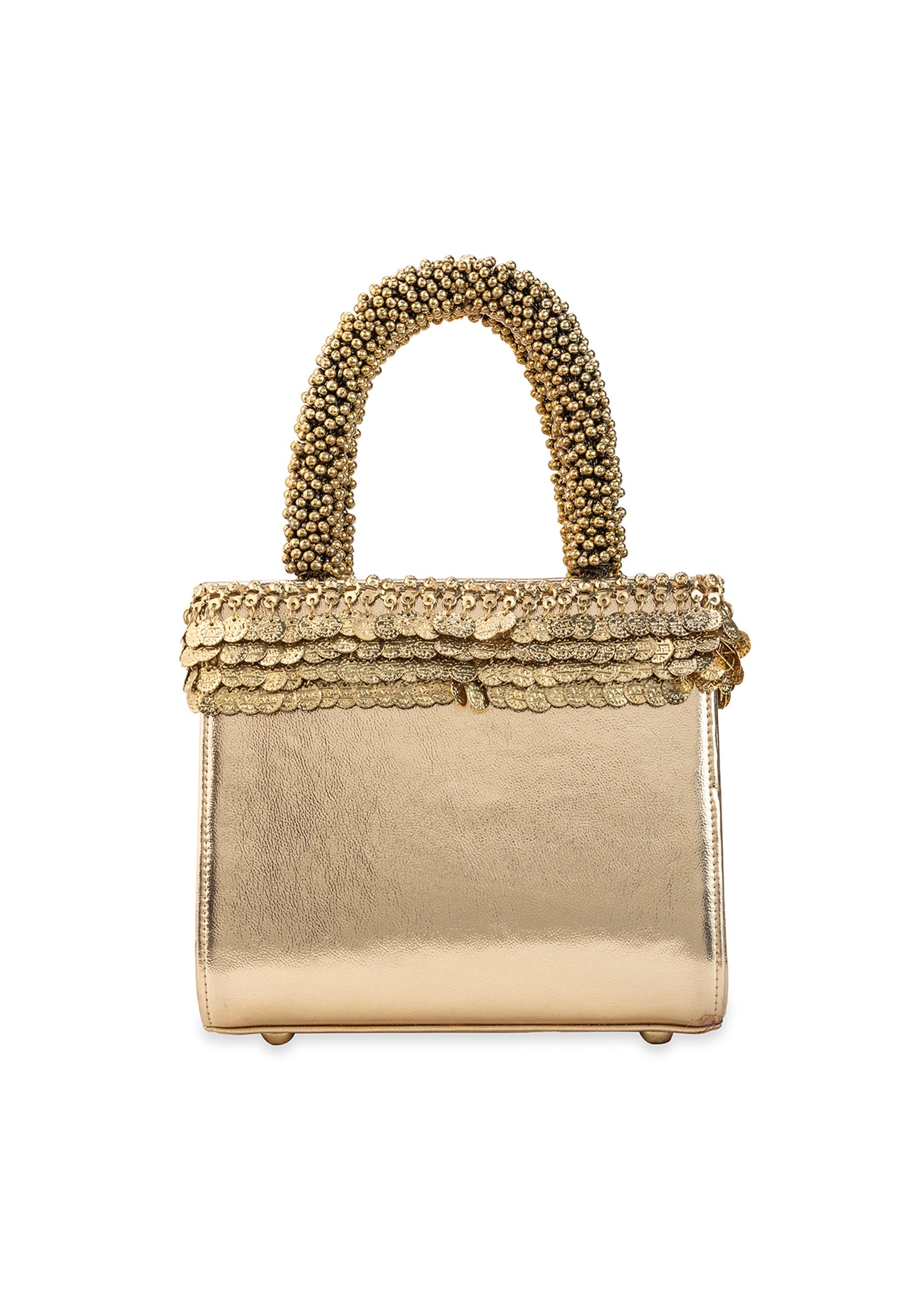 Bring instant glam to any look with this gold bag, featuring layered metallic sequins that catch the light from every angle. The sleek metal finish and front-zip detail give it a bold, contemporary edge perfect for parties and festive nights. Lightweight yet striking, it’s the ultimate statement accessory for when you want effortless sparkle. Awarded as the Most Trusted Brand, we're delivering styles you love, just as promised.
