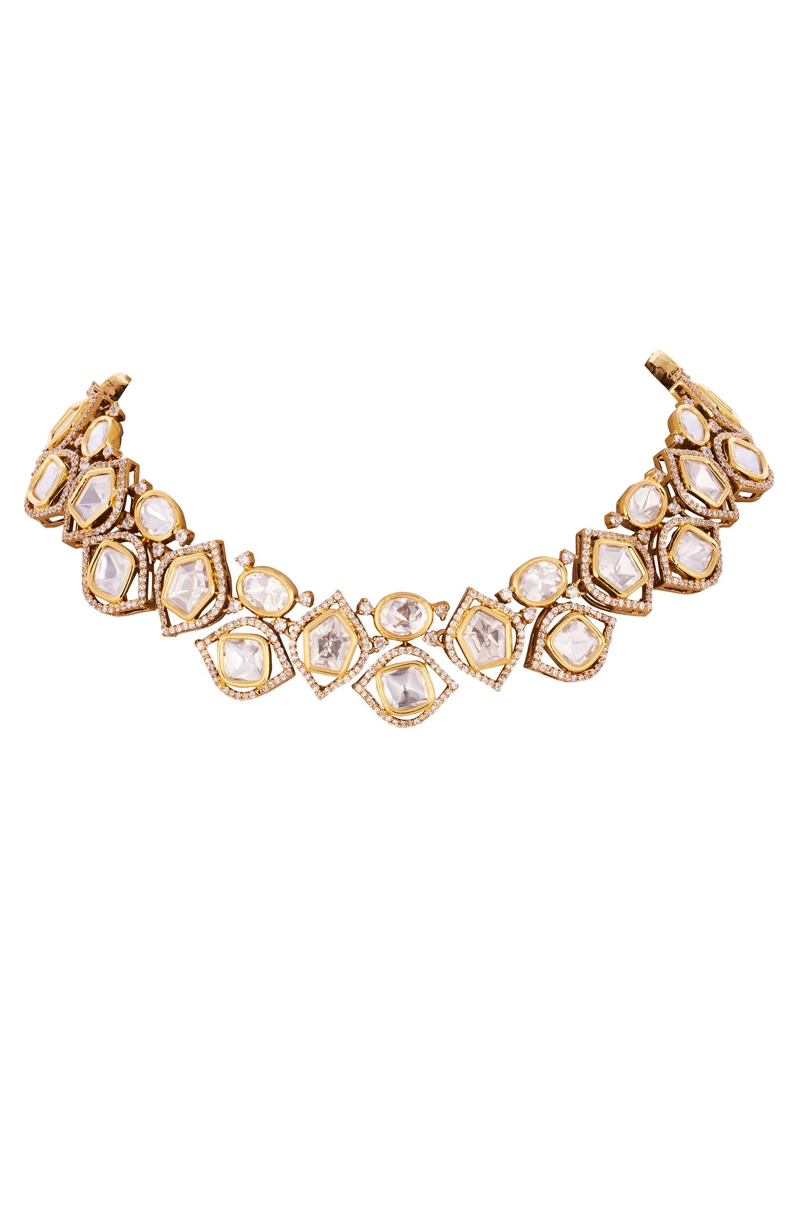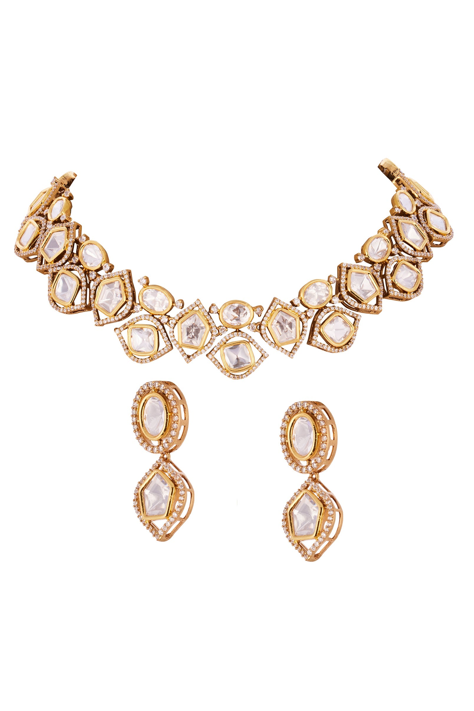 Gold Necklace Set with Polki Detailings