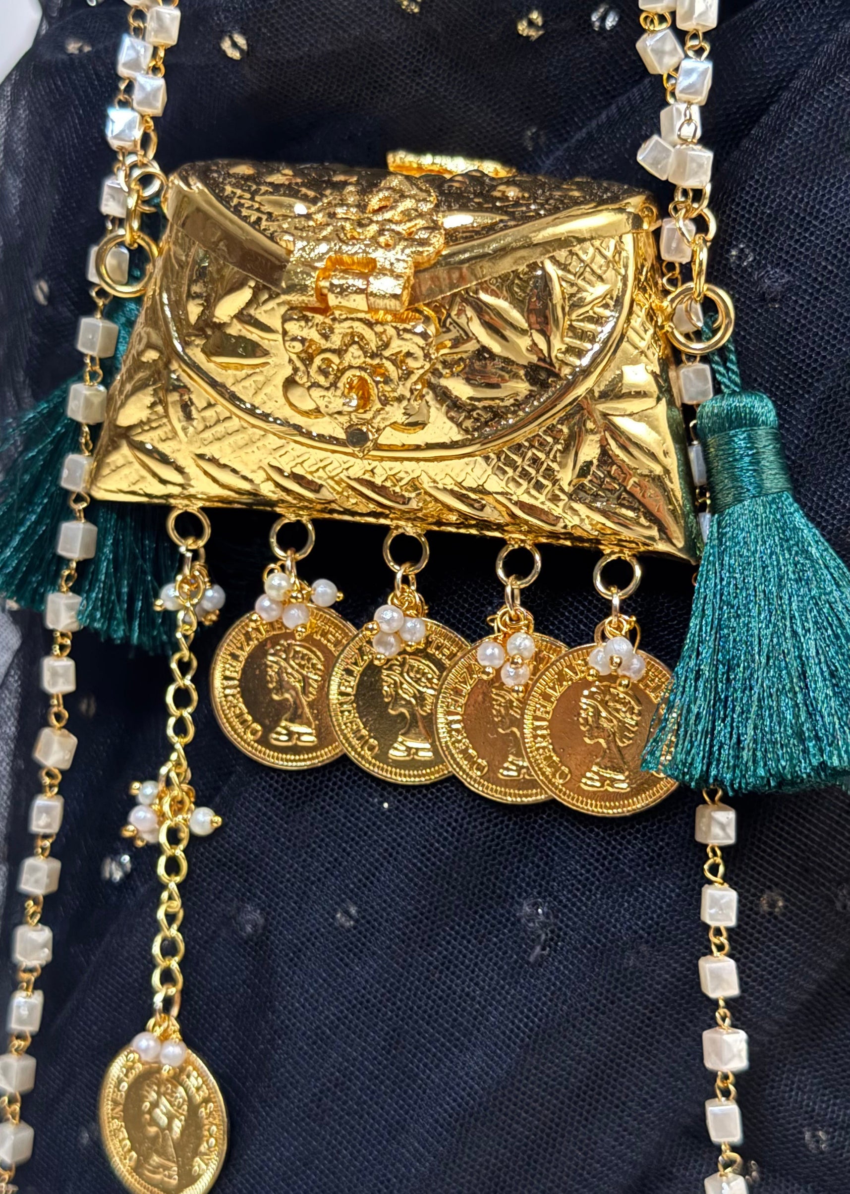 Gold Pearl Coin Charm Potli Bag
