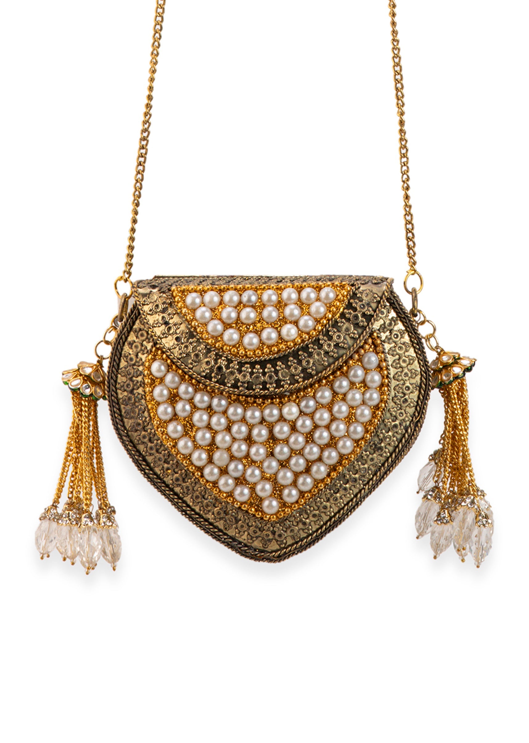 Gold Pearl Embellished Filigree Sling Bag