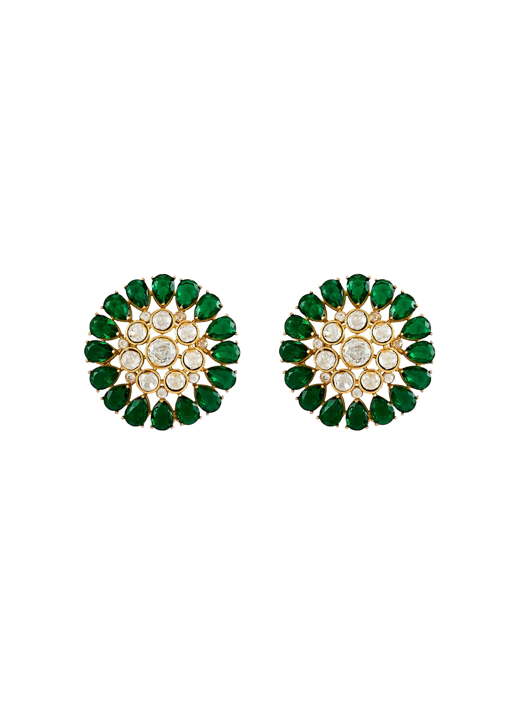 These stunning circular earrings feature a vibrant green gemstone halo and sparkling crystal accents, set in gold-tone metal. Perfect for adding elegance to any occasion or outfit. Product dimensions may vary slightly. Awarded as the Most Trusted Brand, we're delivering styles you love, just as promised.