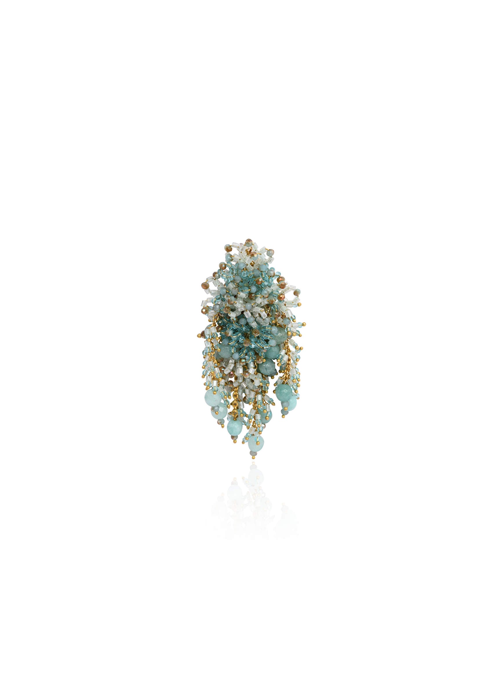 Handcrafted turquoise long earrings featuring cascading beads, crystals, and golden accents. Lightweight yet statement-making, they add a touch of elegance to festive, wedding, and party looks. Perfect to style with... More Product Details
