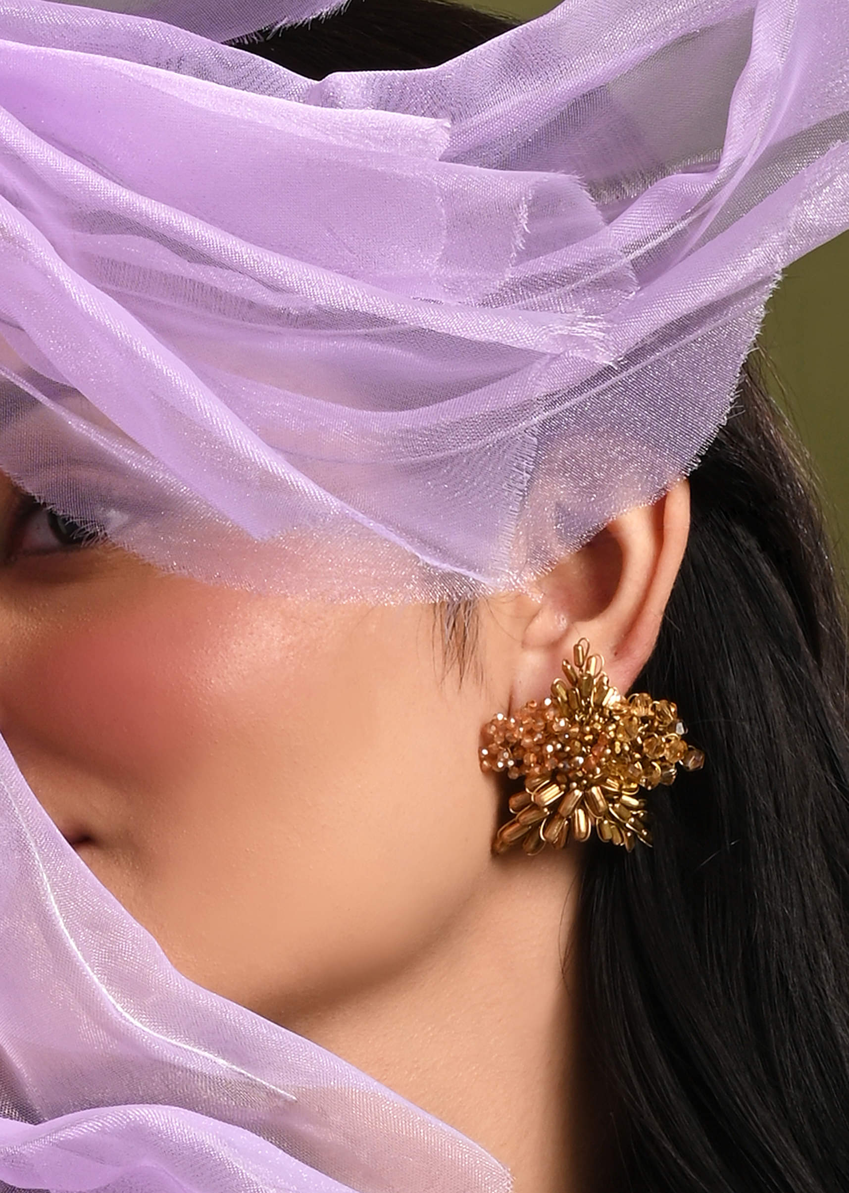 Gold Plated Metallic Abstart Earrings For Ethnic Wedding Look