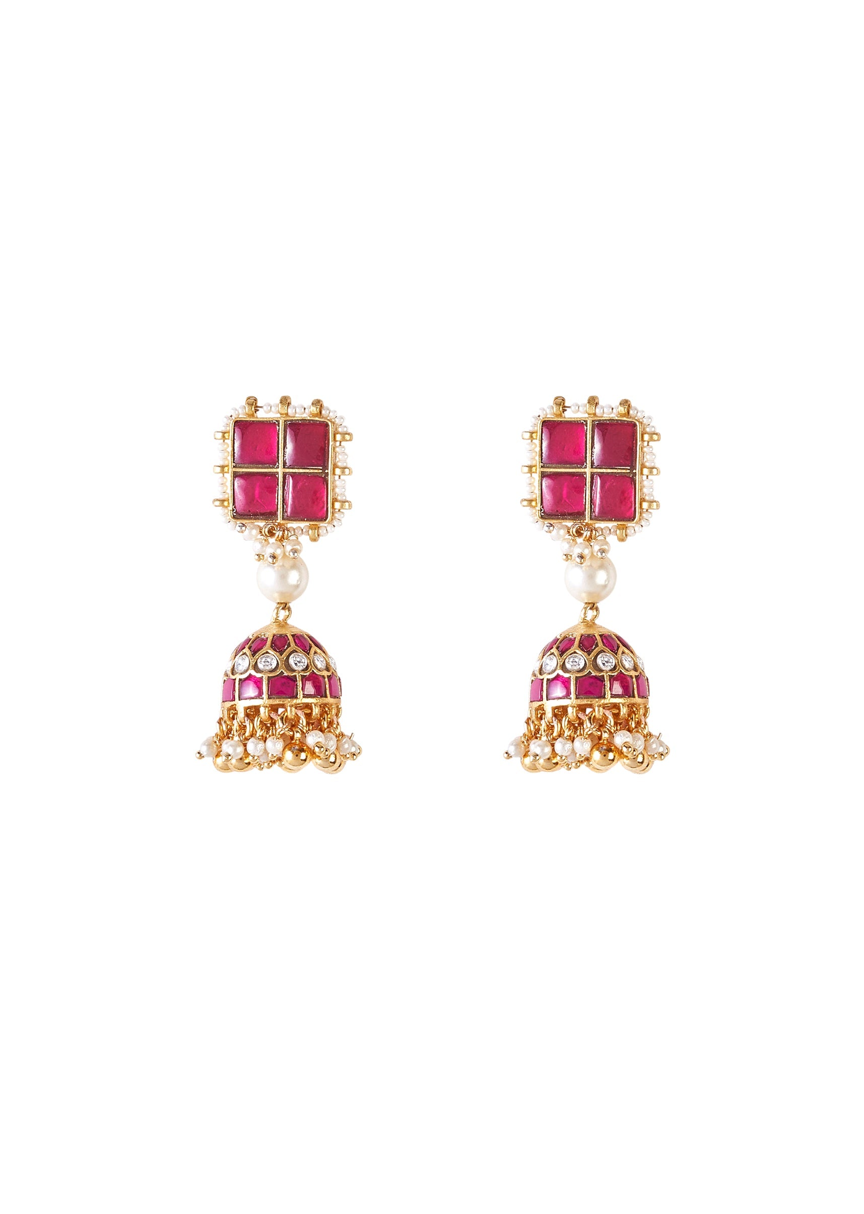 This elegant necklace set features a royal pendant with a pink stone centerpiece, adorned with horse motifs, red enamel, and pearls. Paired with jhumka earrings, perfect for festive and traditional looks. Product dimensions may vary slightly. Awarded as the Most Trusted Brand, we're delivering styles you love, just as promised.