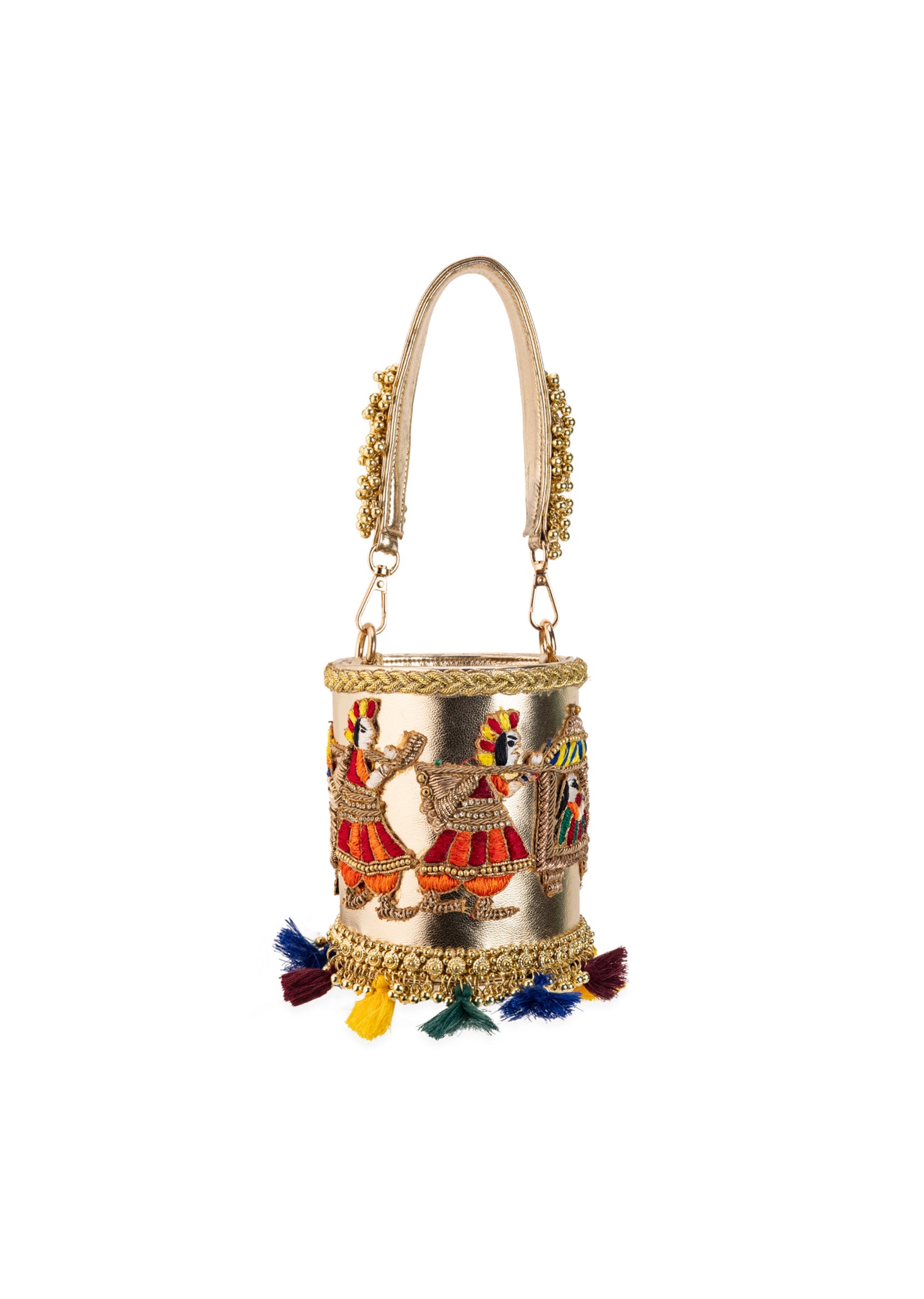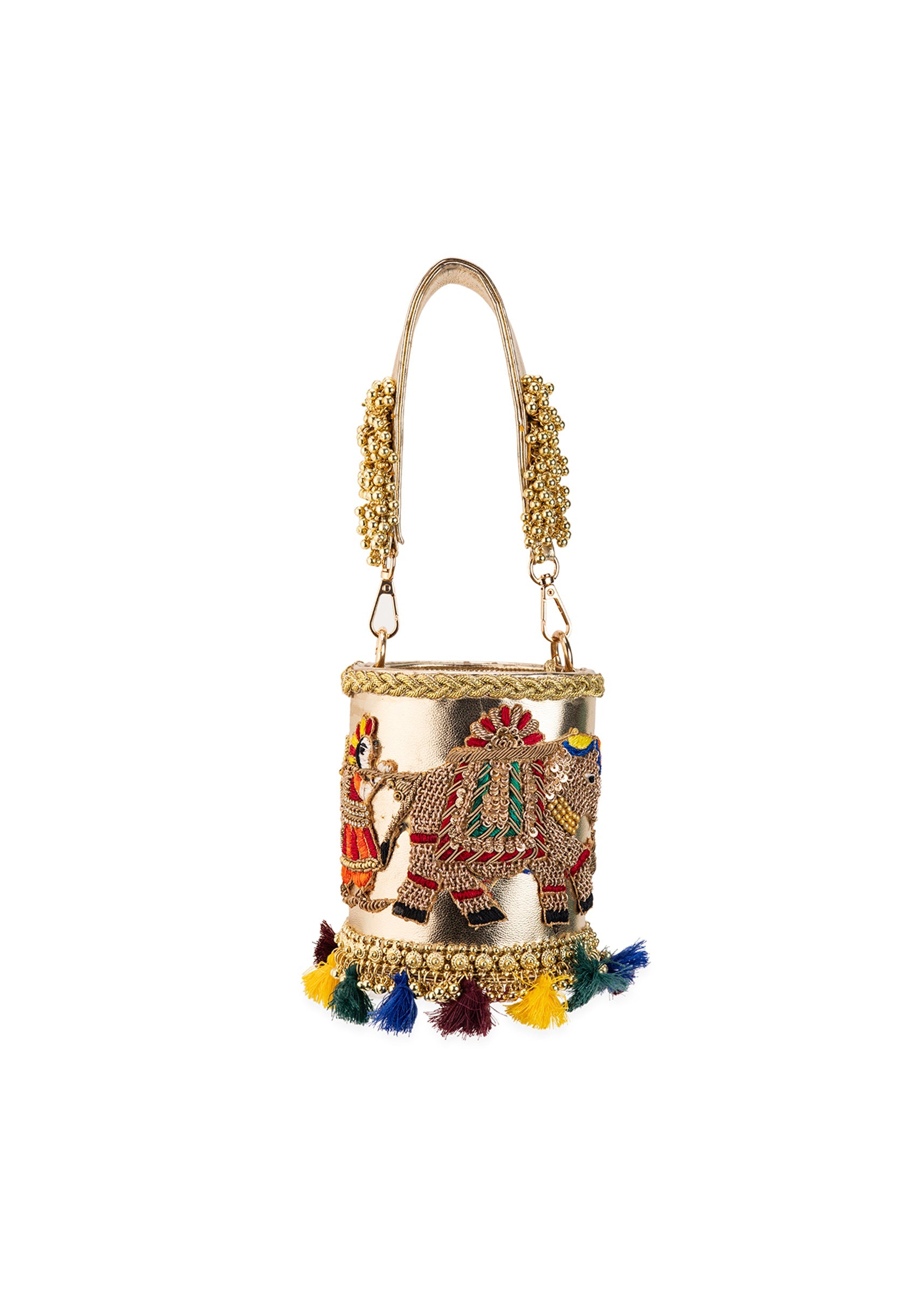 Gold Tassel Drop Embroidered Potli Bucket Bag