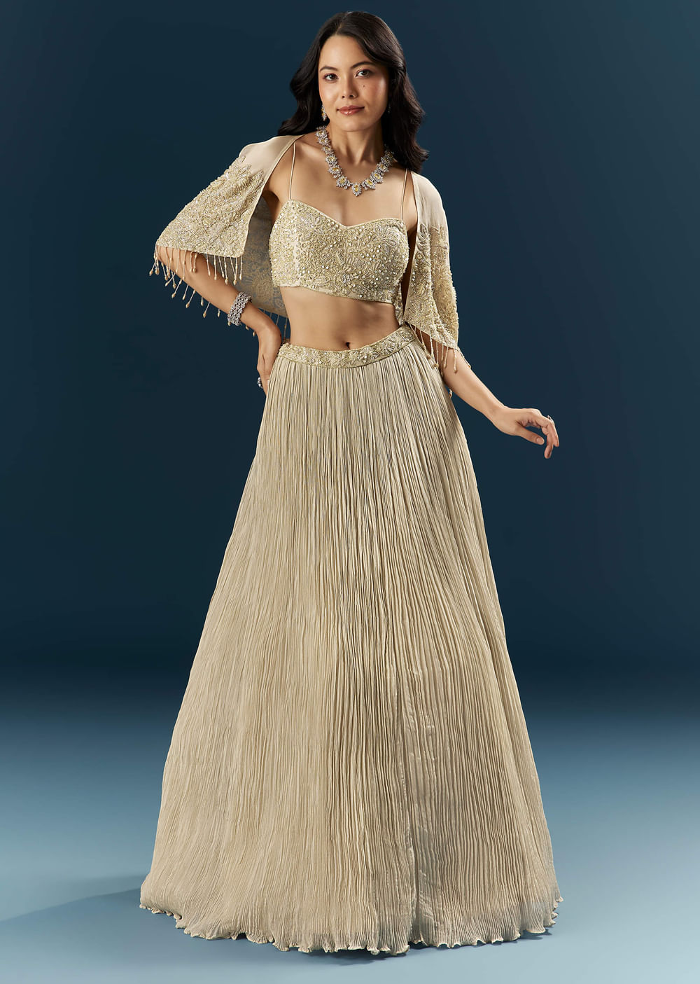 Gold Tissue Bridesmaid Lehenga With Cutdana And Beads Embroidery