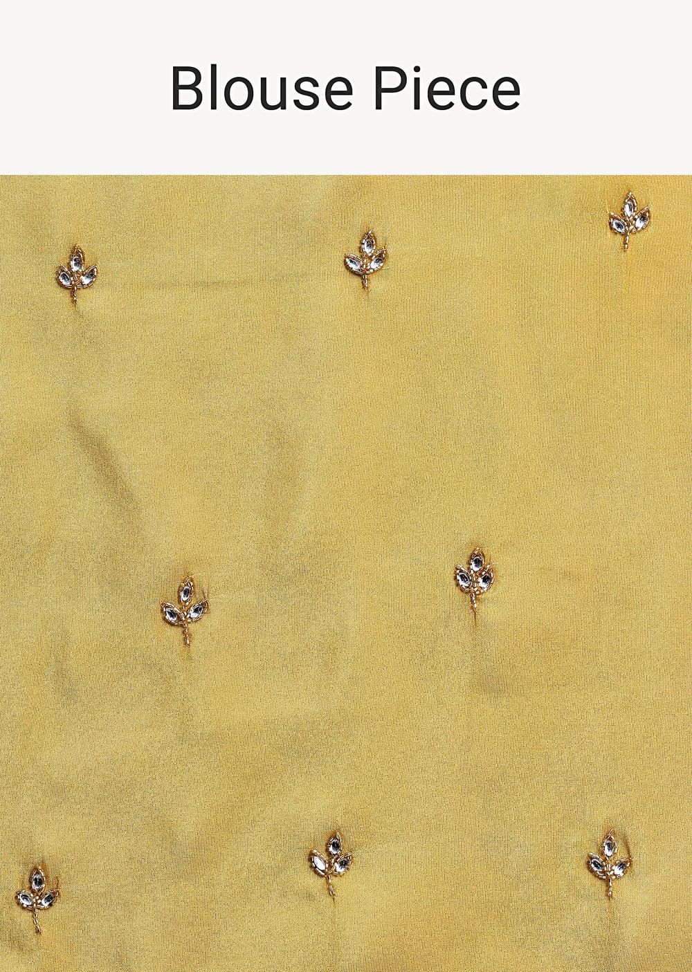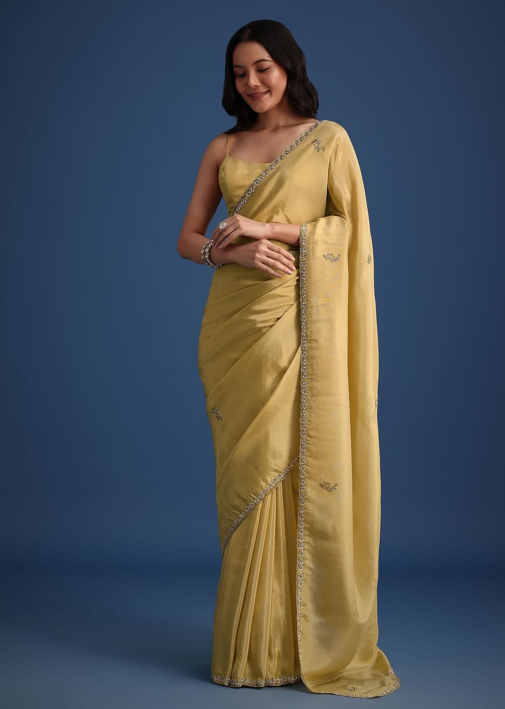 Elegant and opulent this gold tissue saree features a cutdana-embellished border adding a touch of luxury to your festive wardrobe. Pair it with bold makeup and high heels to turn heads. Awarded as the Most Trusted Brand, we're delivering styles you love, just as promised.