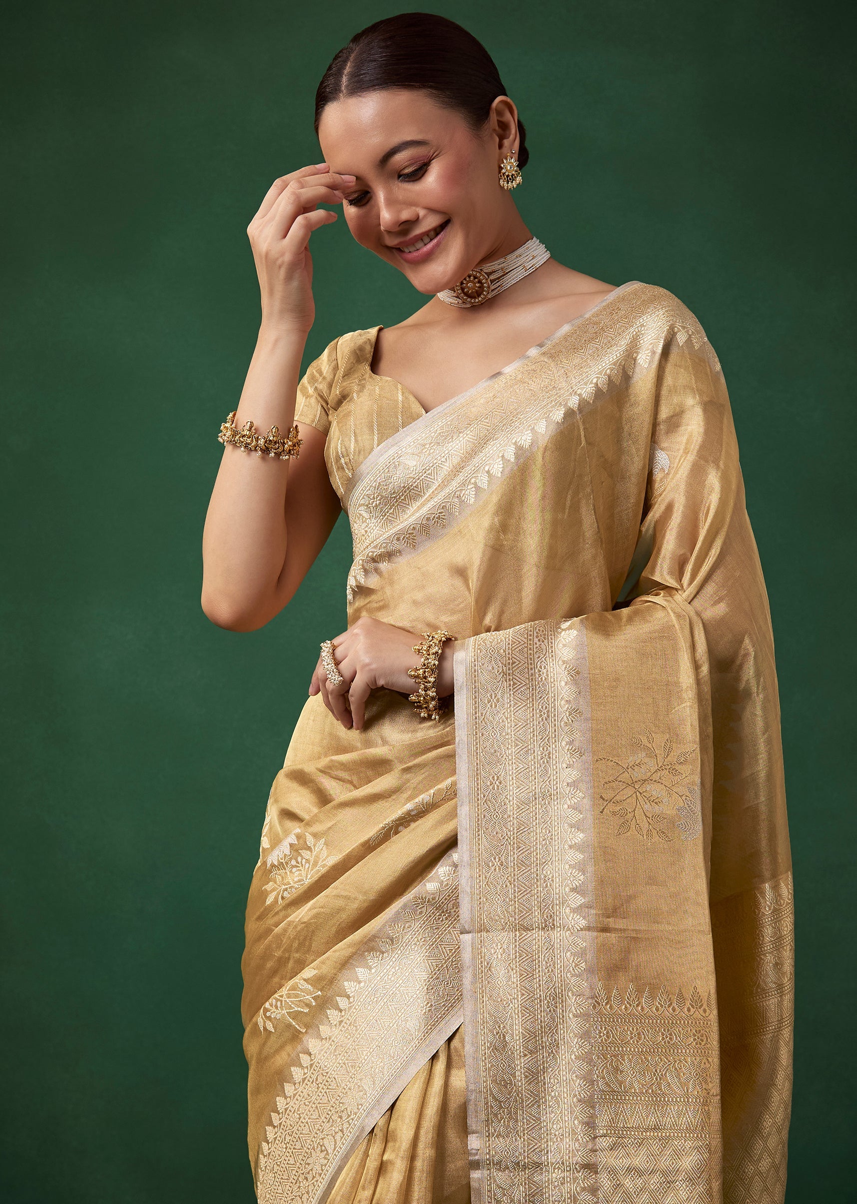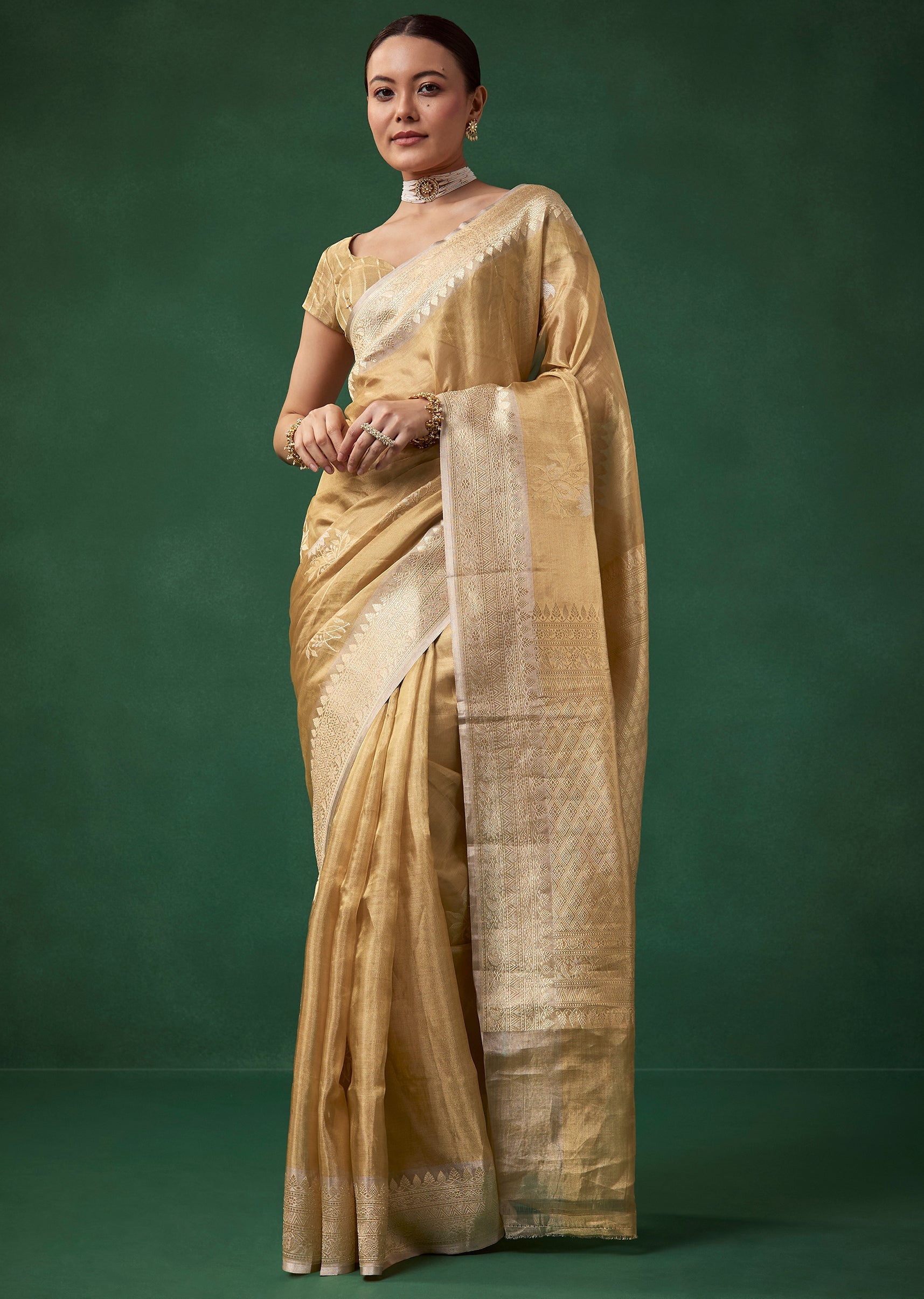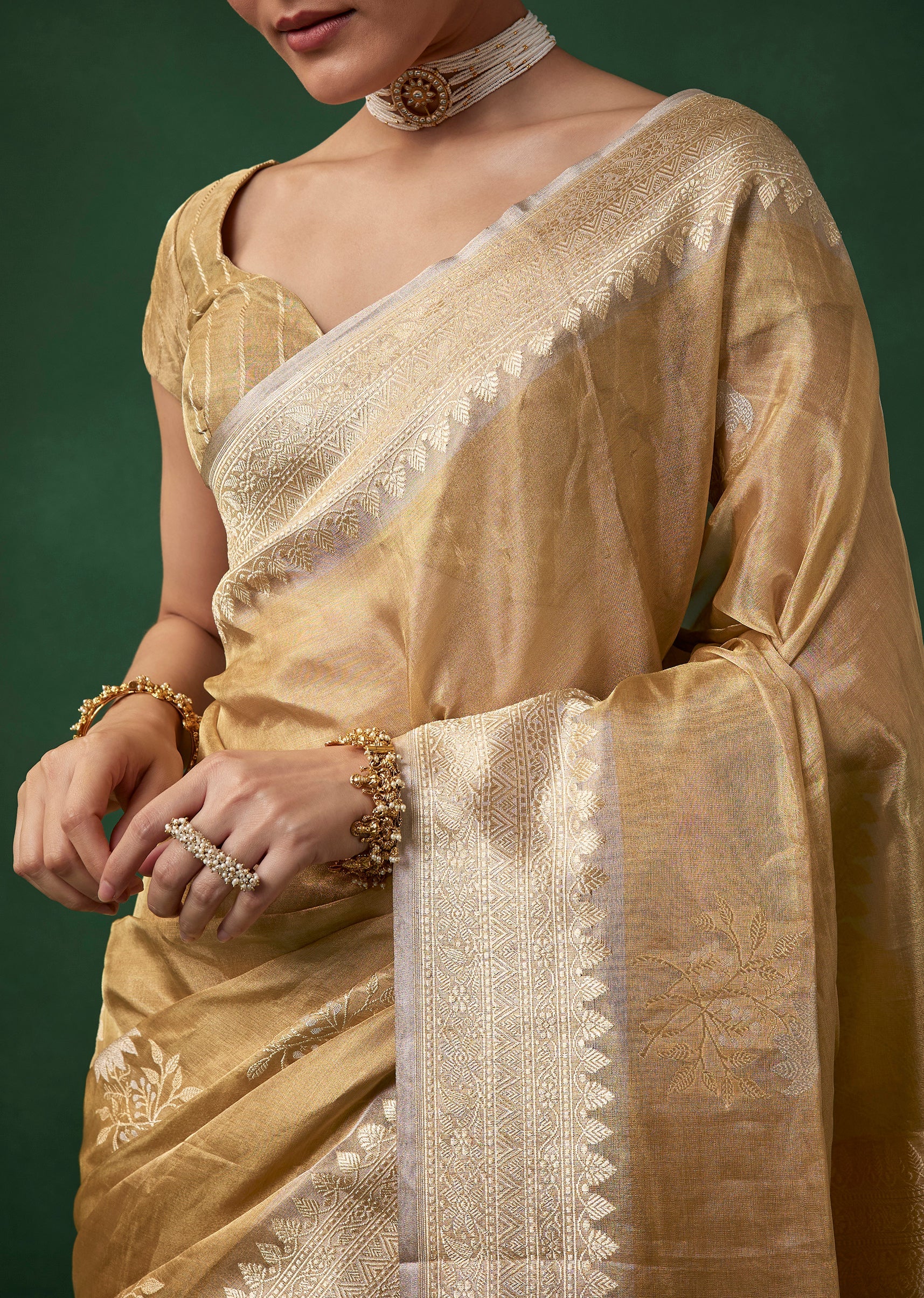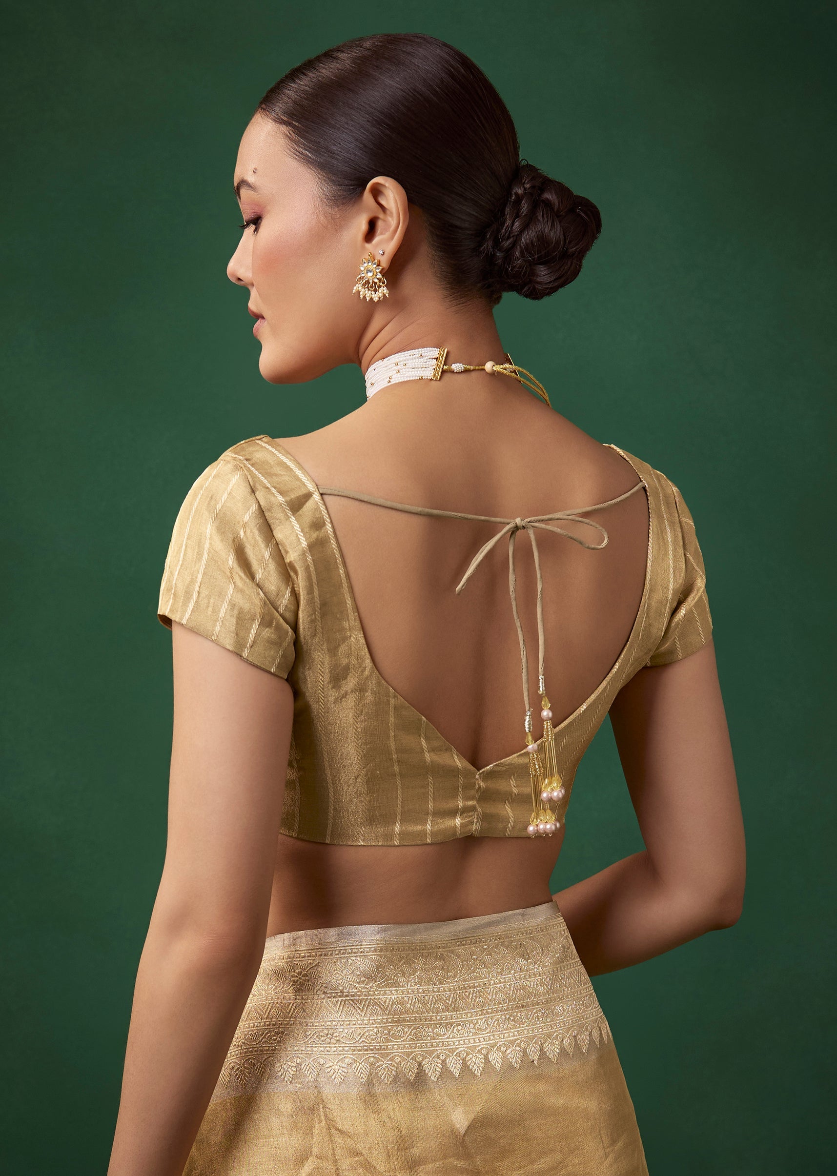 Gold Tissue Silk Butti Woven Saree with Unstitched Blouse