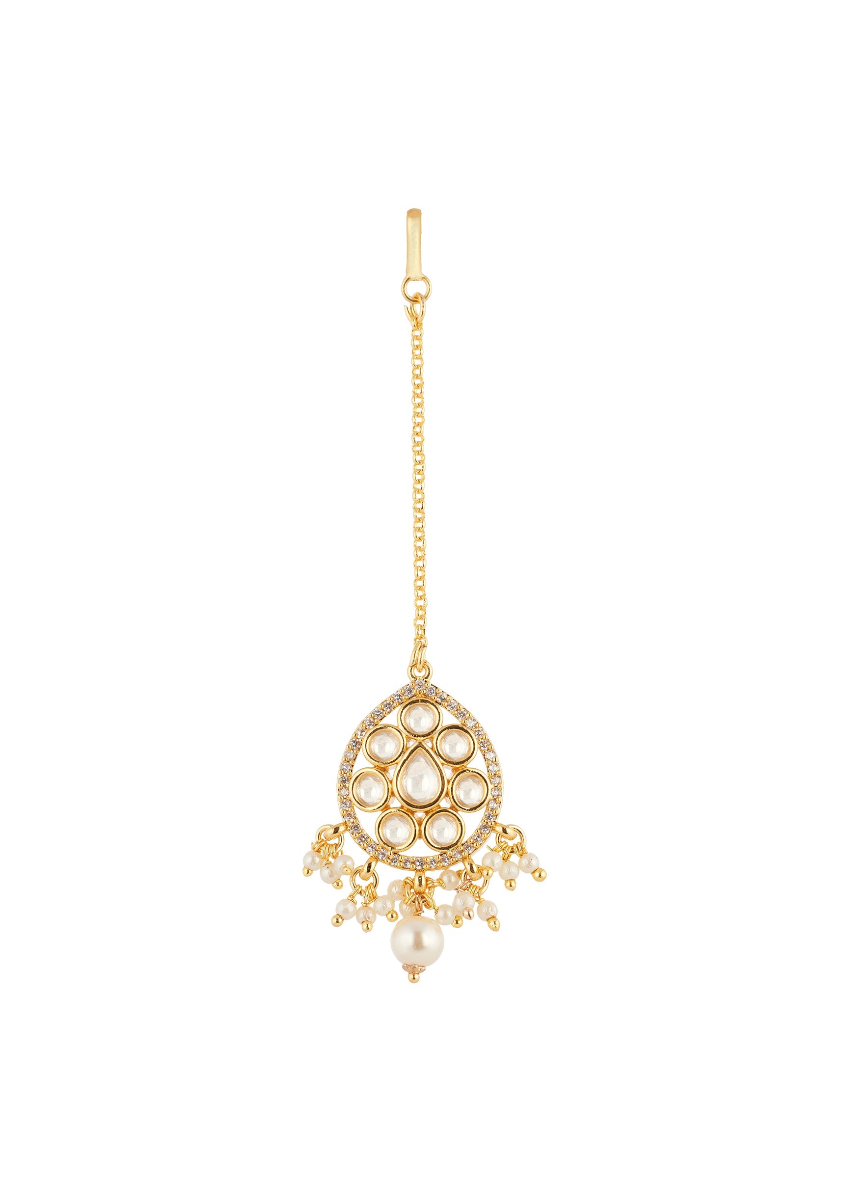 This gold and white maangtikka features delicate craftsmanship that adds a subtle sparkle and polished charm to your look. Its balanced design ensures it sits comfortably while enhancing the hairline... More Product Details
