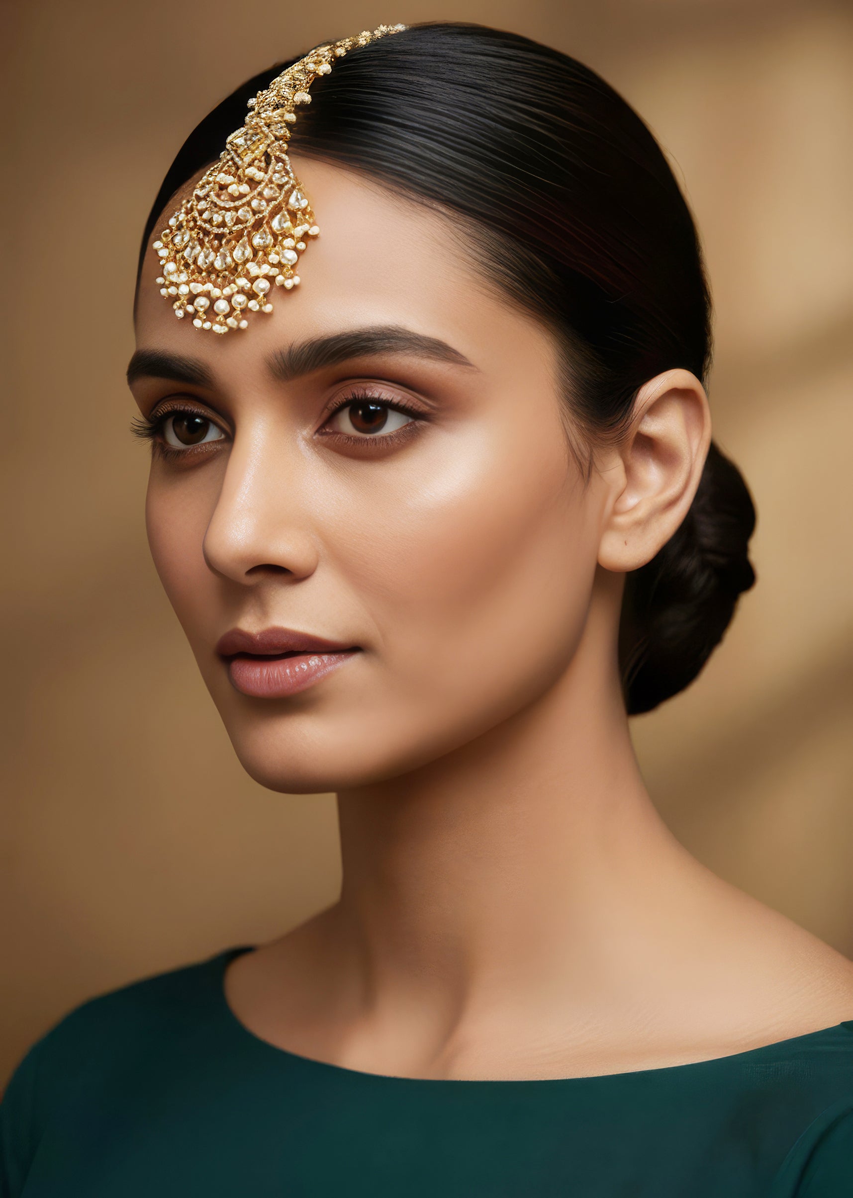 Gold White Maangtikkas With Polished Detail