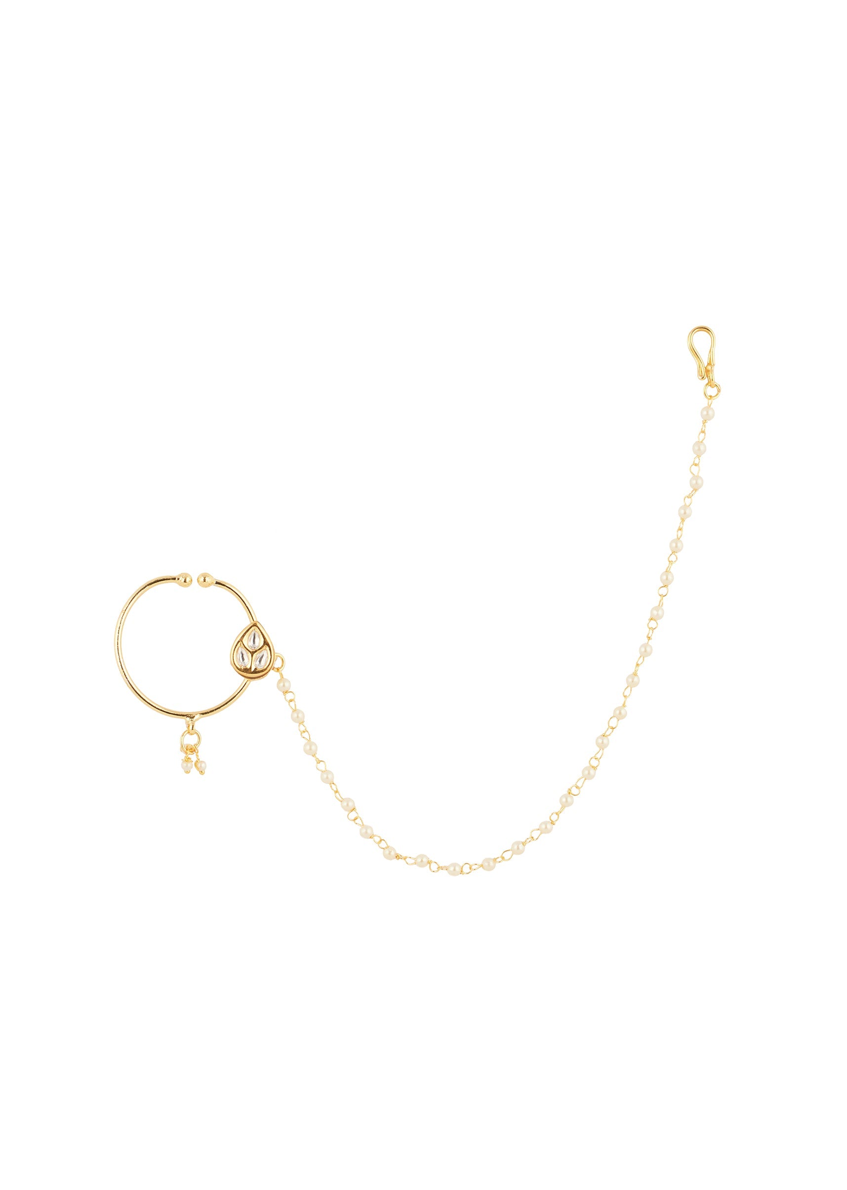 This gold and white nose ring is designed with intricate craftsmanship that brings a subtle shimmer and refined charm to your look. Lightweight and balanced, it enhances the facial features... More Product Details