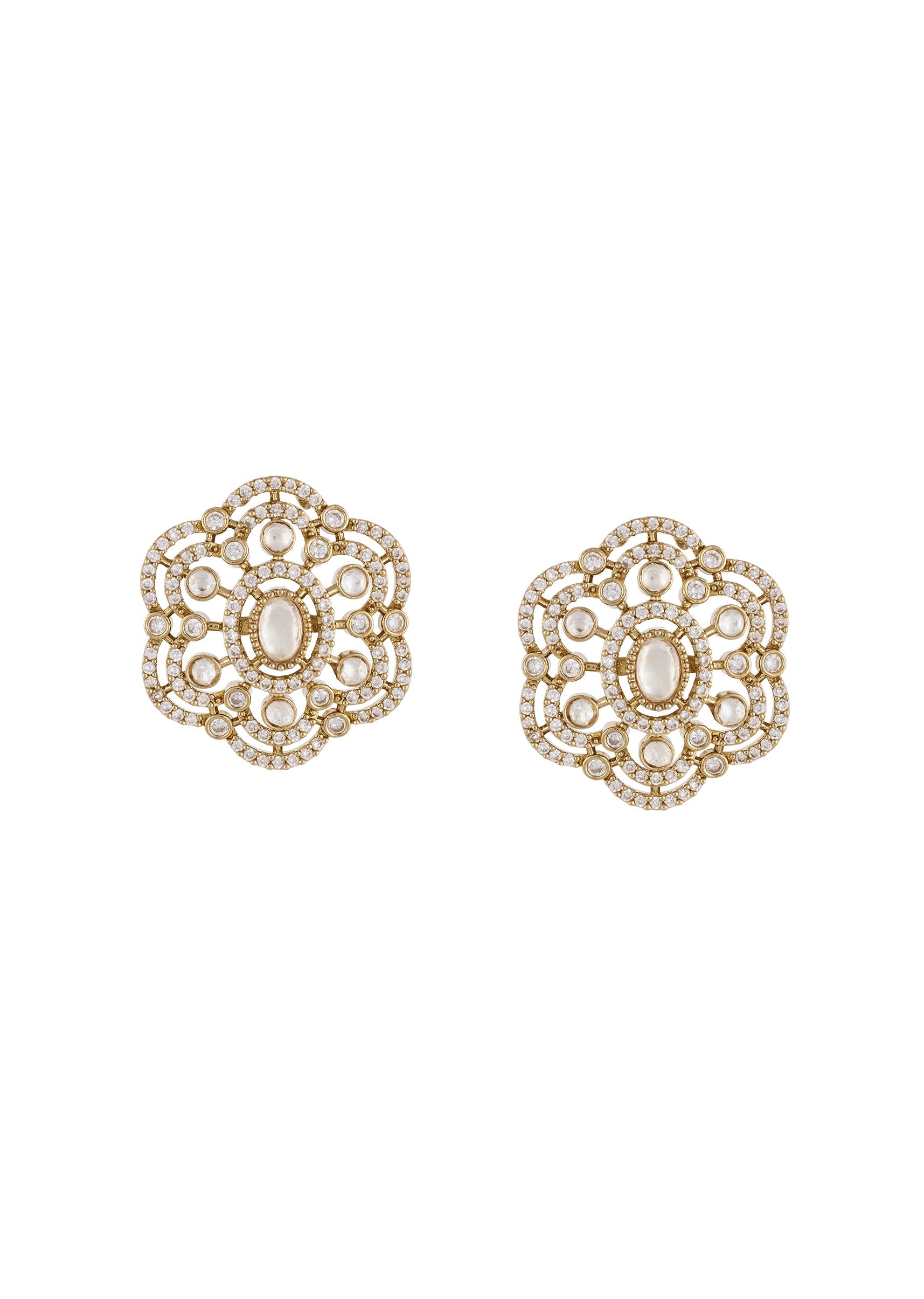 Gold White Polki Earrings With Intricate Detail
