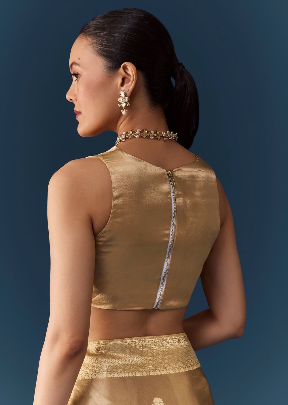 Fit Tips:Stitch the blouse for a neat, structured fit to complement the saree’s smooth drape and intricate zari work.