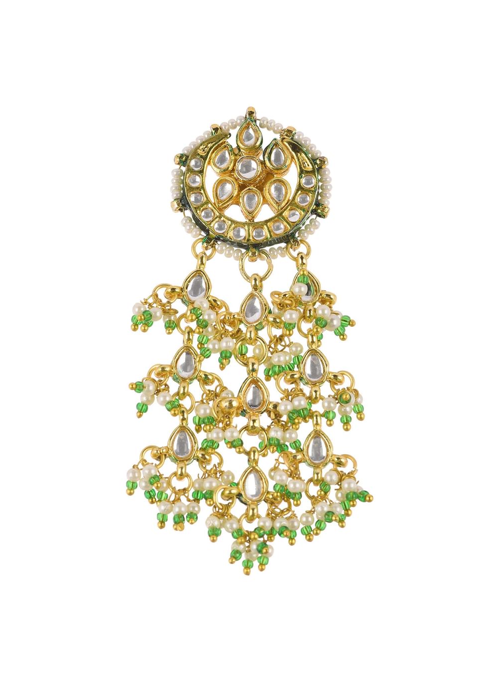 A gorgeous pair of green and gold kundan and pearl dangler earrings. The earrings have a beautiful finish and craftsmanship. Handcrafted using best quality material. The jewellery piece is polished and anti-tarnish. The earrings have an adjustable back closure. Avoid contact with water, chemicals, harsh liquids, perfumes, etc. Do not wear this piece of jewelry while showering, gymming, swimming, etc. Hard contact must be avoided completely. Please keep the product away from moisture and humidity when not in use. Baroque pearls and Natural stones can range from minor aberrations to distinctly ovoid, curved, pinched, or lumpy shapes. Awarded As The Most Trusted Brand We'Re Delivering Styles You Love Just As Promised.