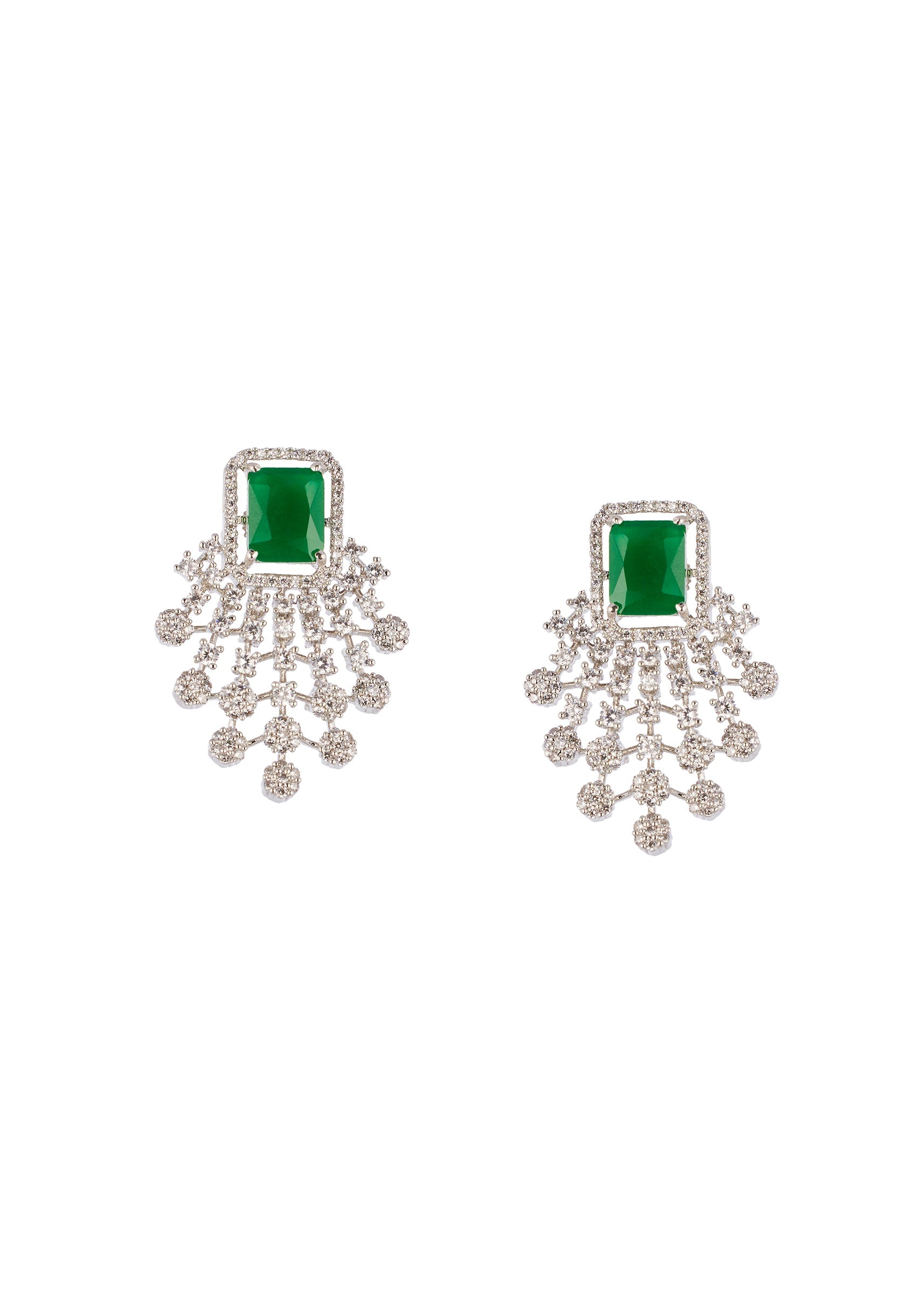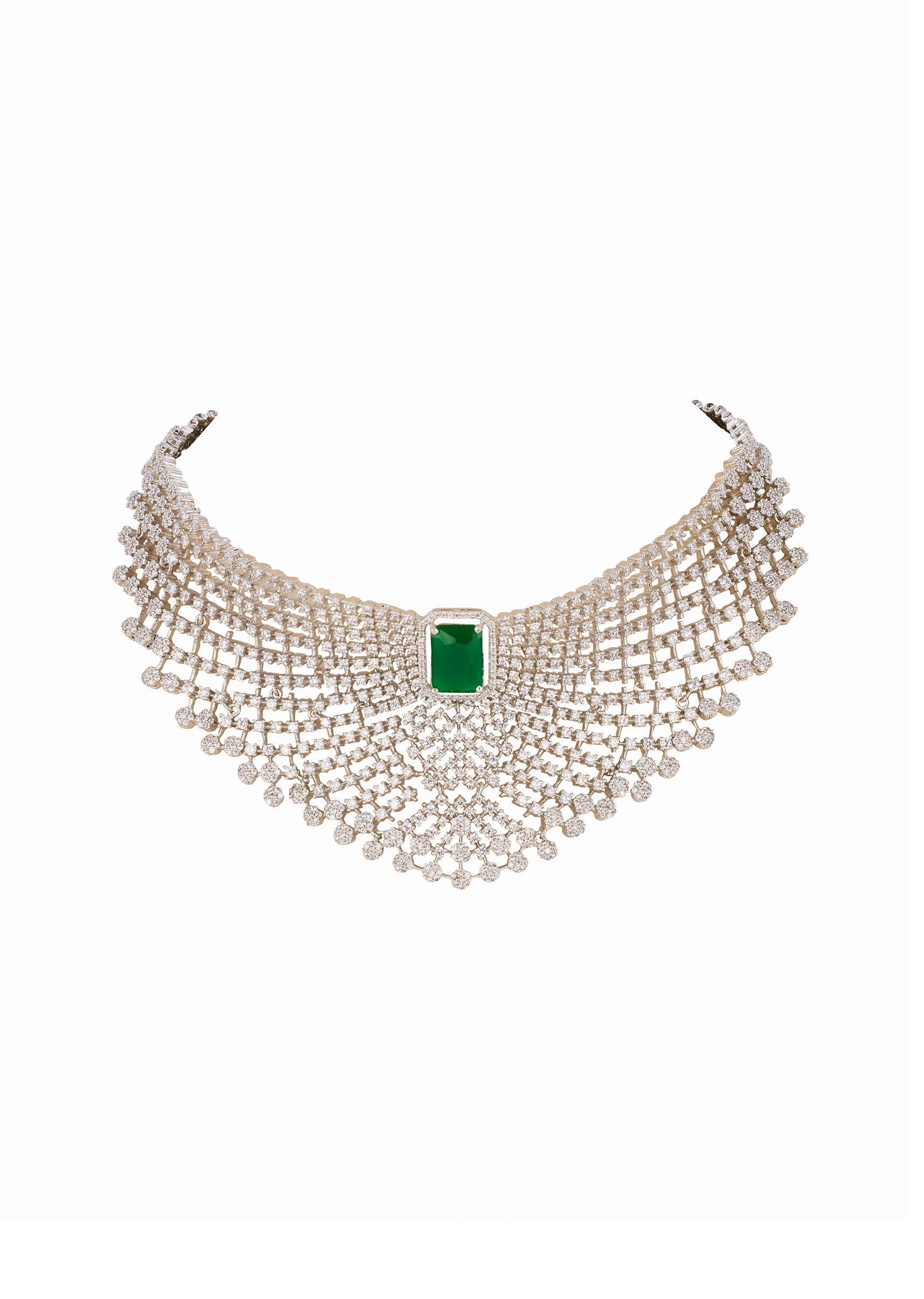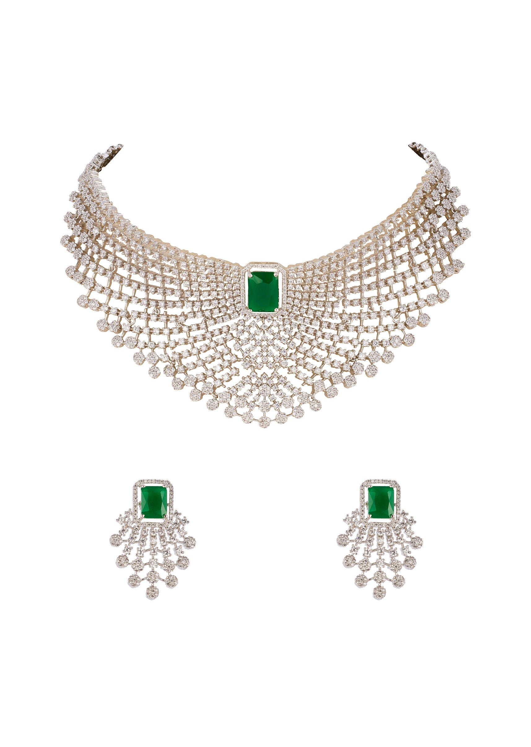 Green and Silver Rhodium Plated Necklace Set with CZ Diamond