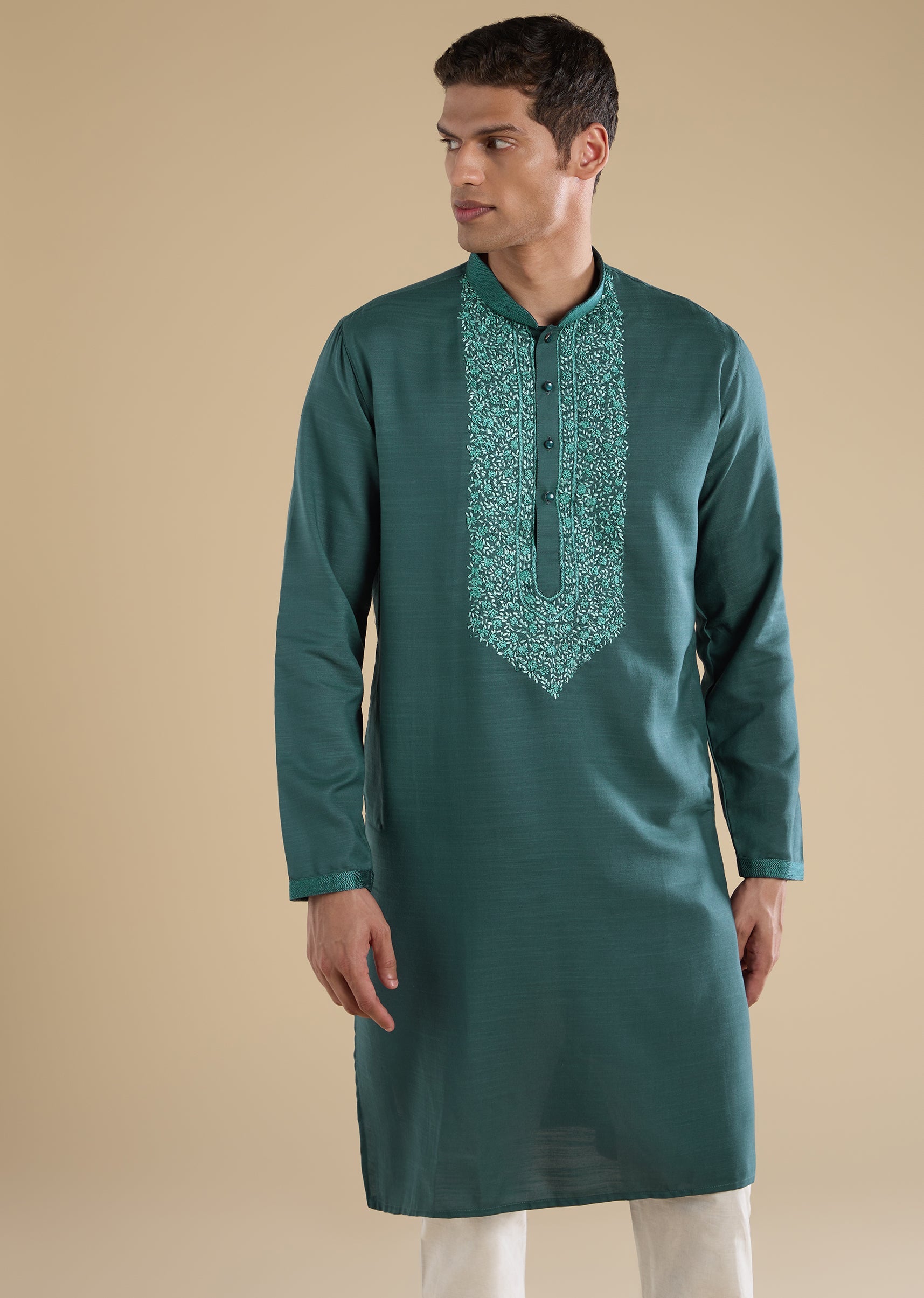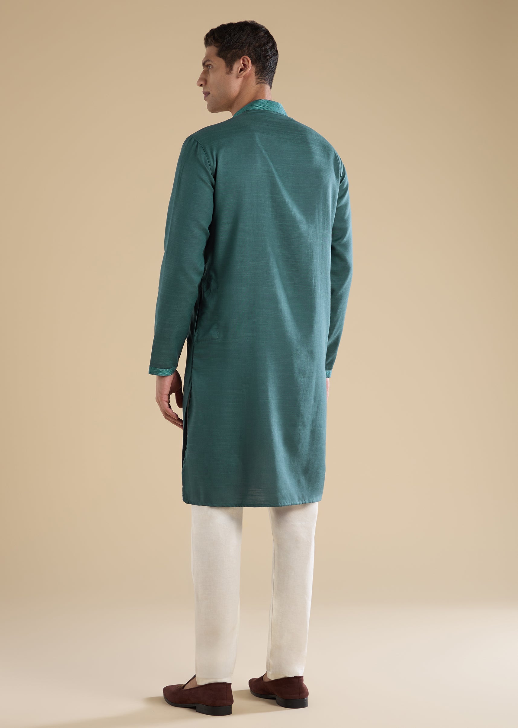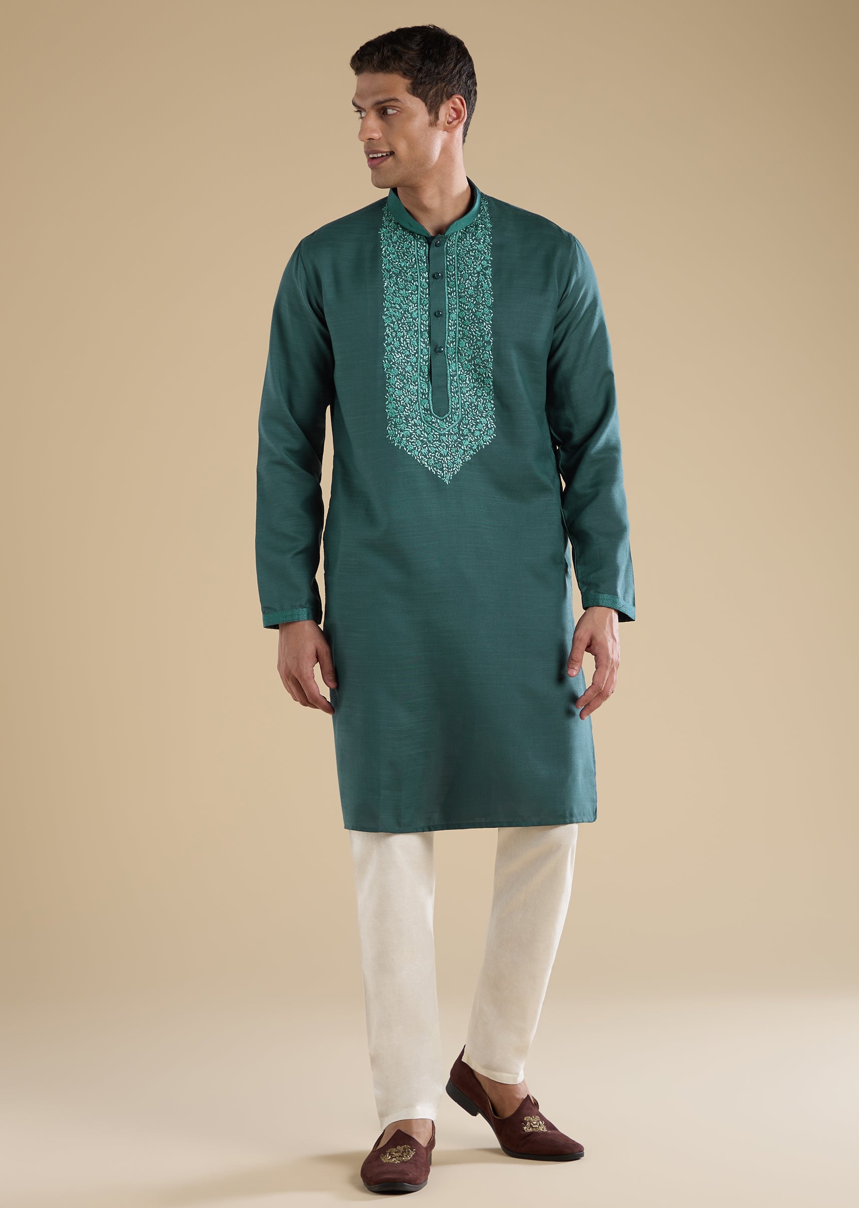 Fresh and easy-going, this green kurta set is crafted for relaxed casual wear. Featuring a mandarin collar, full sleeves, and subtle thread detailing, it offers a clean, fuss-free silhouette. Paired with straight-fit trousers with an elasticated drawstring waist, this set is designed for everyday comfort. Awarded as the Most Trusted Brand, we're delivering styles you love, just as promised.