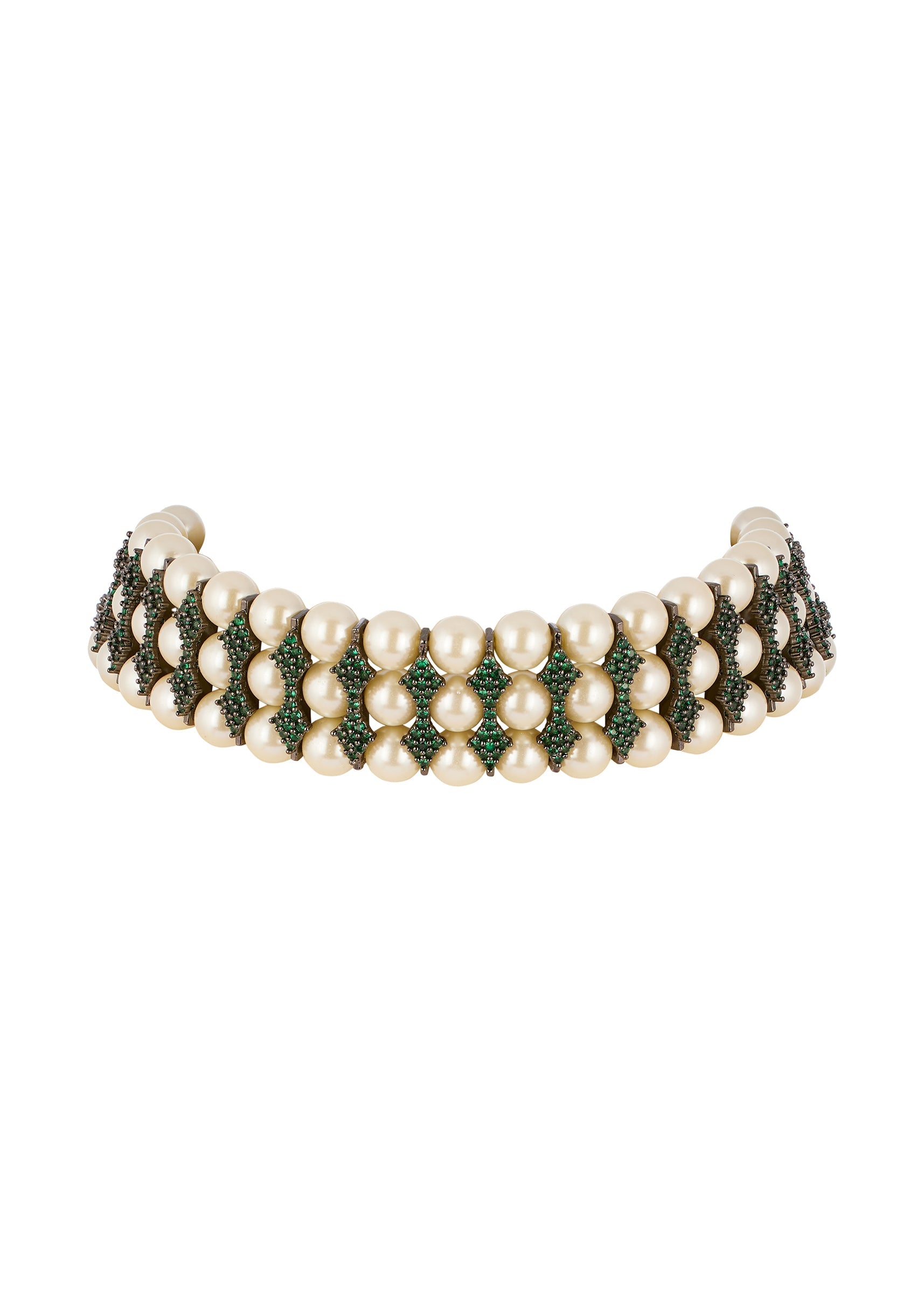 Green Contemporary Faux Pearl and Beaded Choker