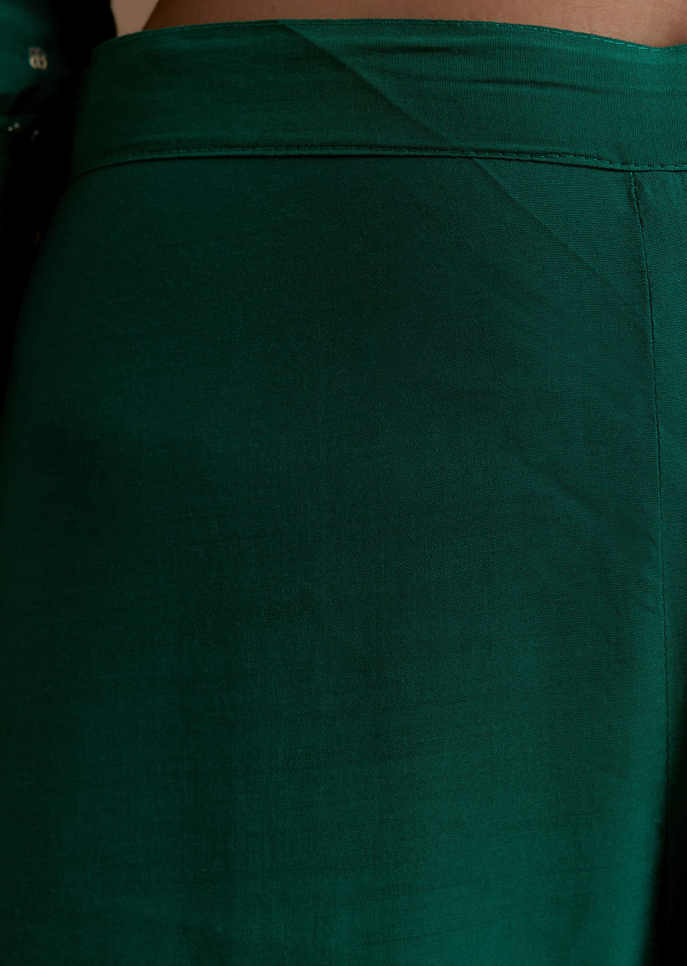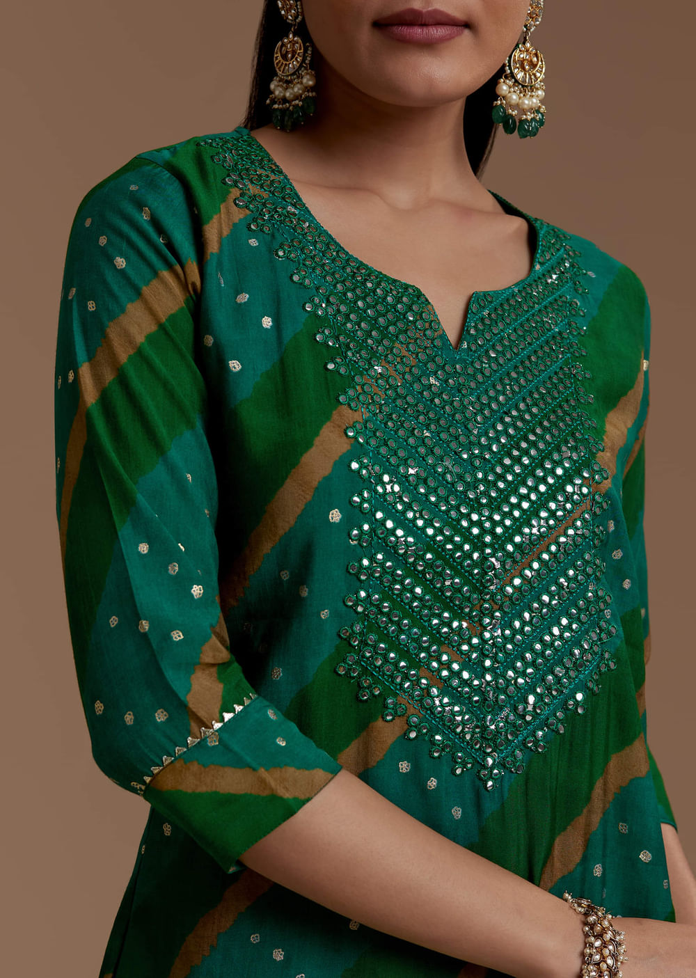 Green Cotton Silk Kurta Set with Foil Mirrors