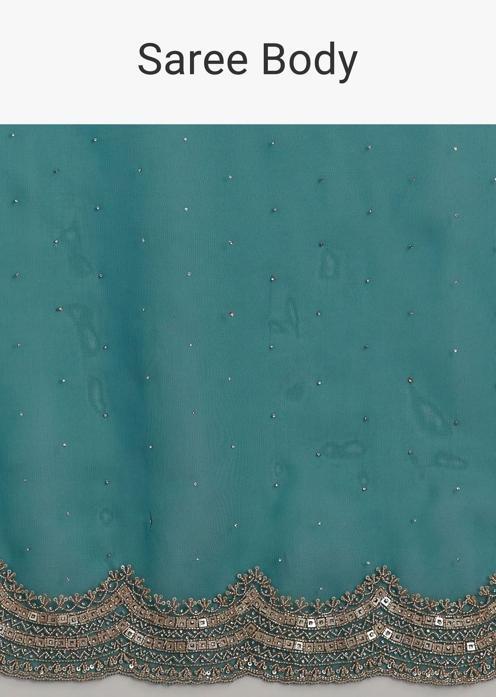 Green Embellished Tissue Saree With Embroidered Cutdana Sequin Border