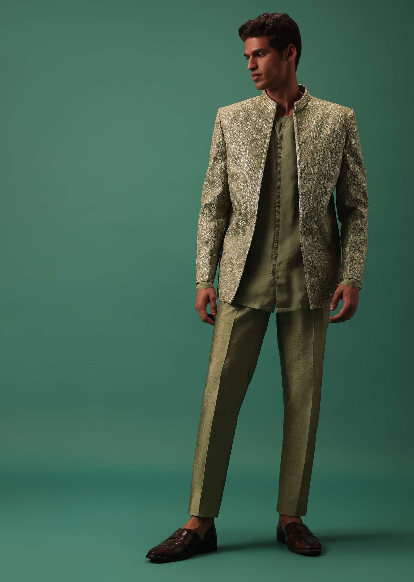 Green Foil Embroidered Jodhpuri Jacket Set With Detailed Organza Kurta