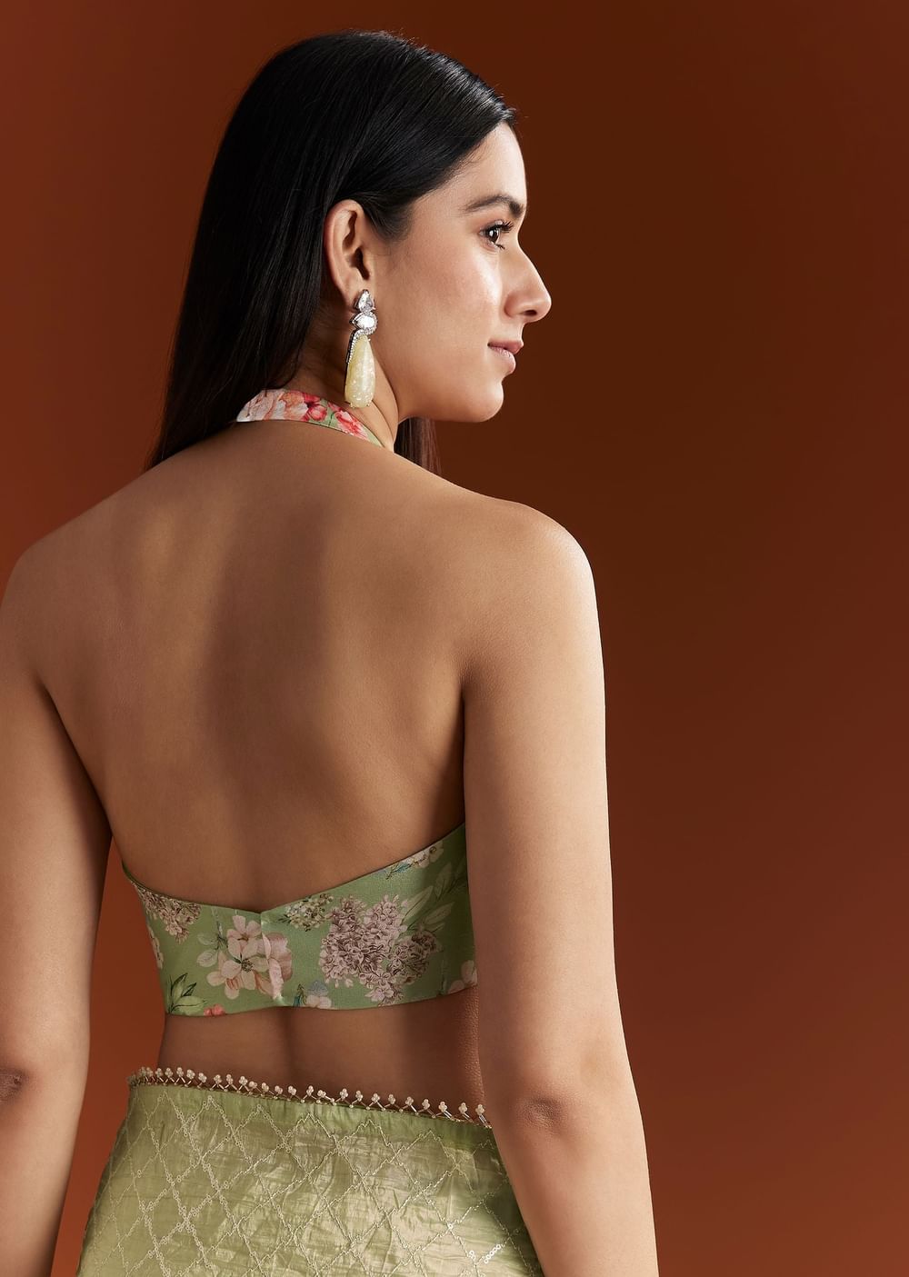 A whisper of nature’s serenity, this green glass tissue saree is a vision of enchantment. Delicate sequin embroidery and a cutdana-beaded border create an aura of effortless charm and refined... More Product Details